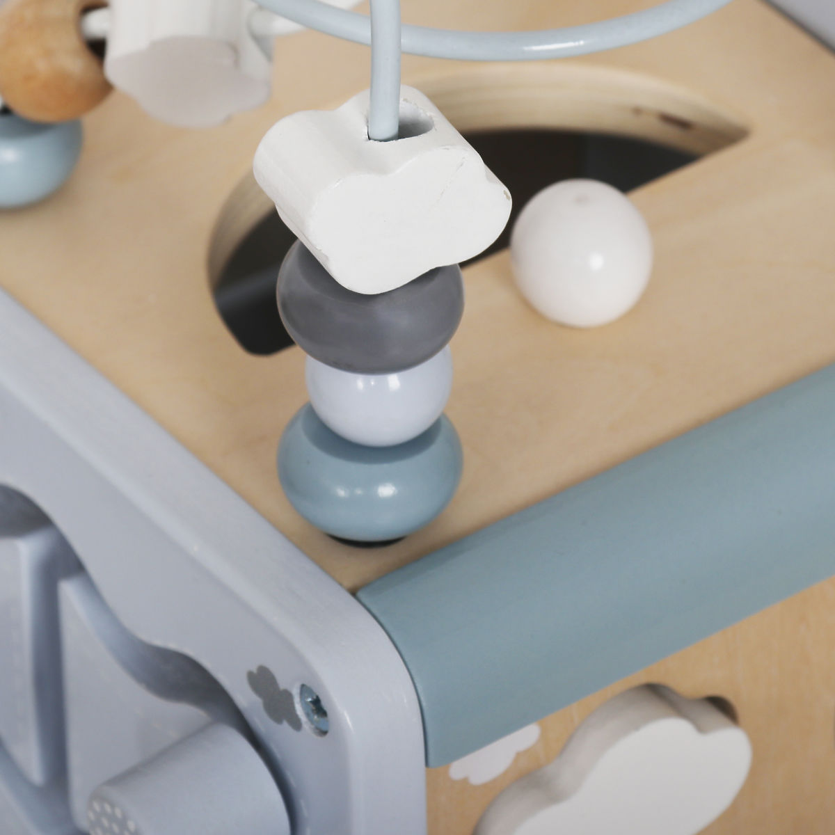 Ova interaktivna drvena kocka izvrstan je pomoćnik u razvoju fine motorike, koordinacije ruku i očiju te razmišljanja. Nudi šarolik svijet igara koje djecu ne samo zabavljaju, već ih i nečemu poučavaju. Idealna za djecu od 4 mjeseca do 6 godina.