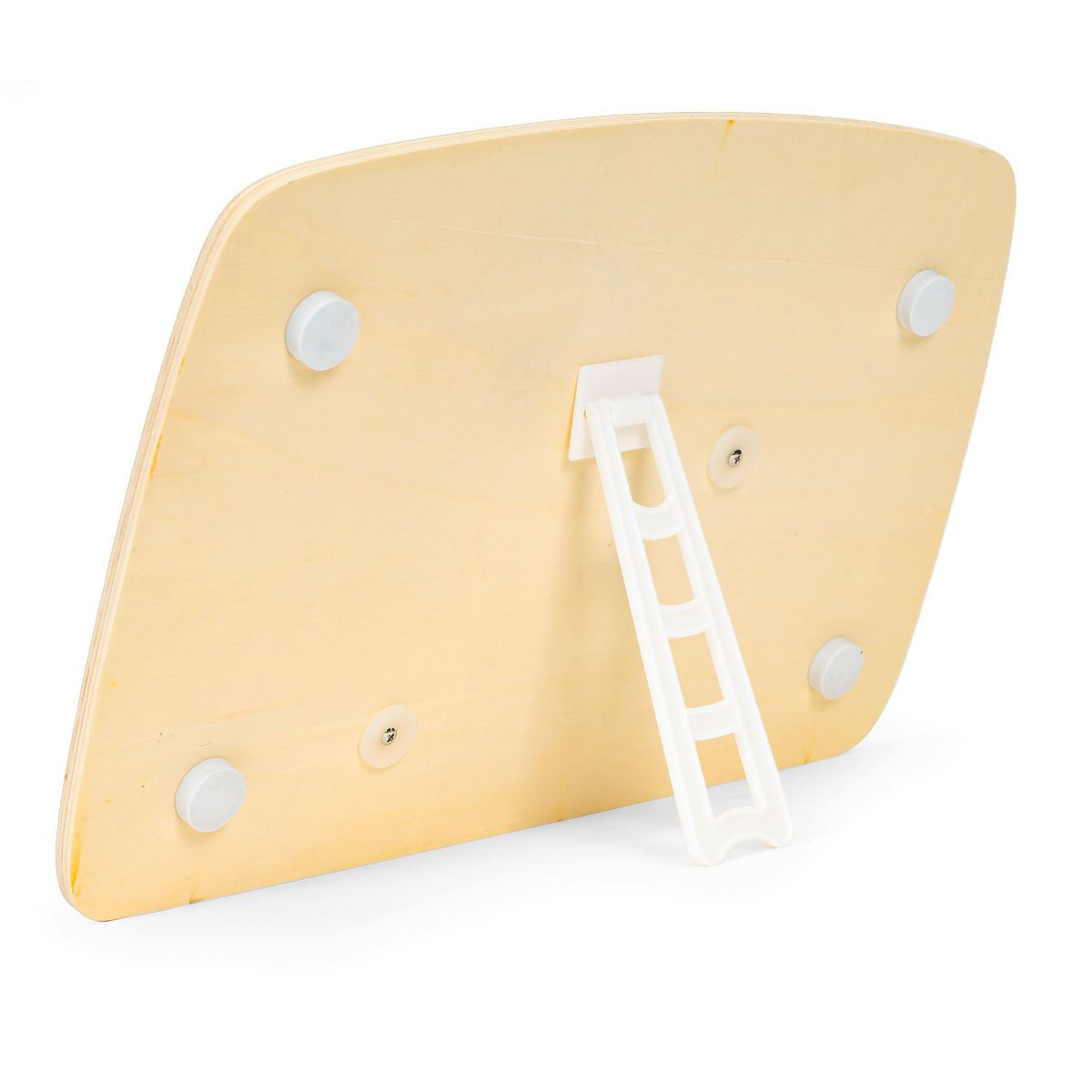 FUNKCIONALNOSTPloča ima potporu straga, što omogućuje njezino sigurno postavljanje na stol ili stolić. Time ploča postaje ne samo edukativna igračka, već i praktičan kalendar.