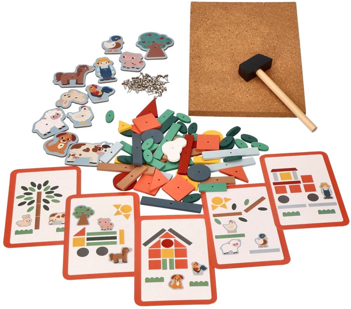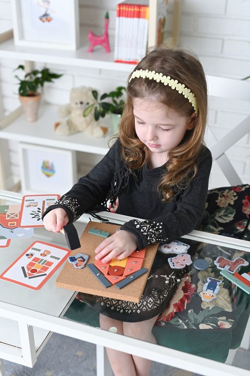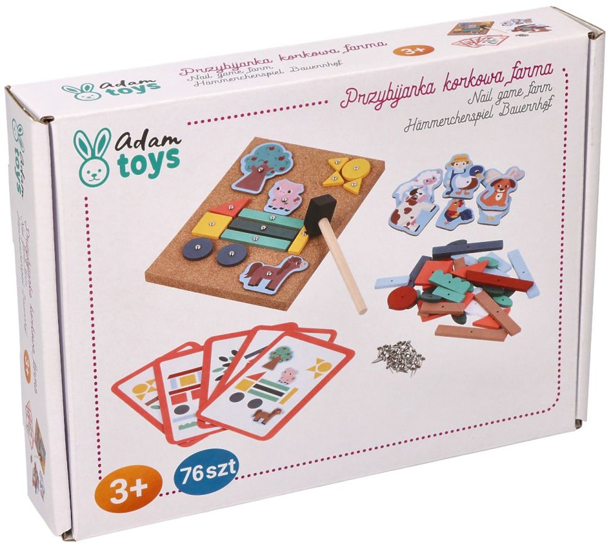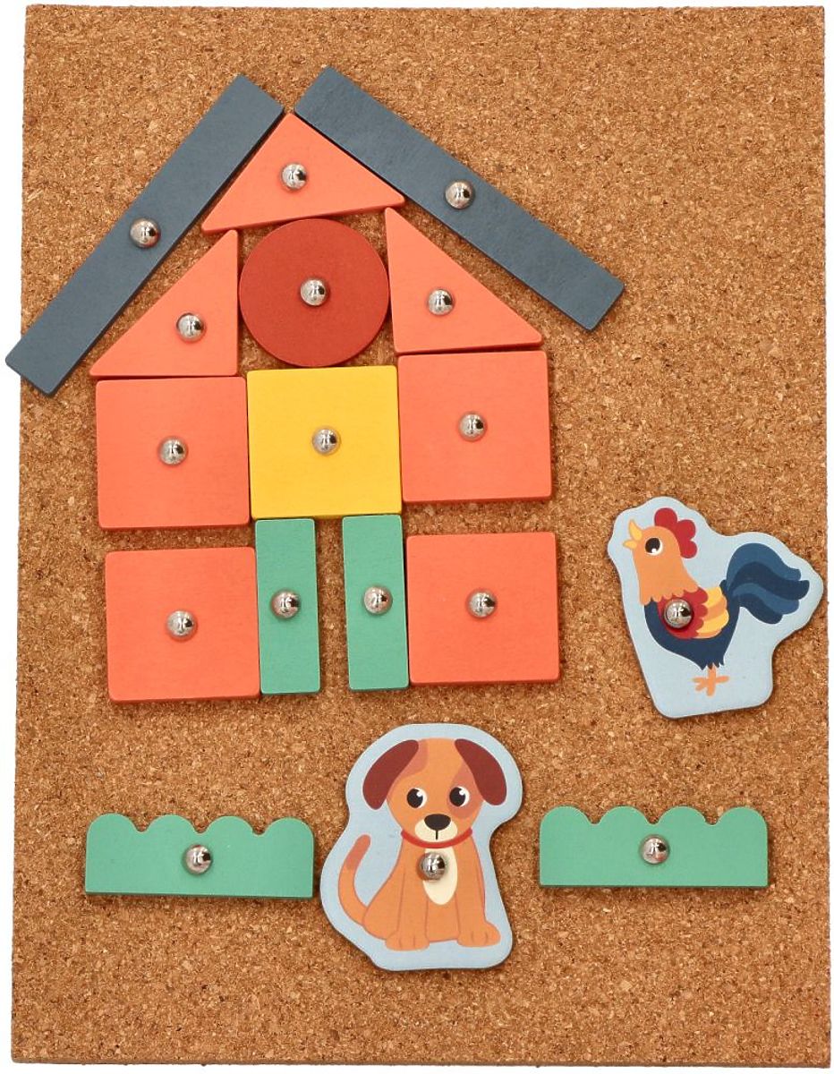 Još jedna zanimljiva ponuda od AdamToys iz serije Farma je sada dostupna!!! Zanimljiva slagalica koja vježba manuelne vještine i spretnost prstiju. Dovoljno je odabrati oblike i zakucati ih u ploču od pluta kako bi se stvorila slika. U setu ćete pronaći elemente za sastavljanje farme, ali zapravo je broj kombinacija i uzoraka ogroman.