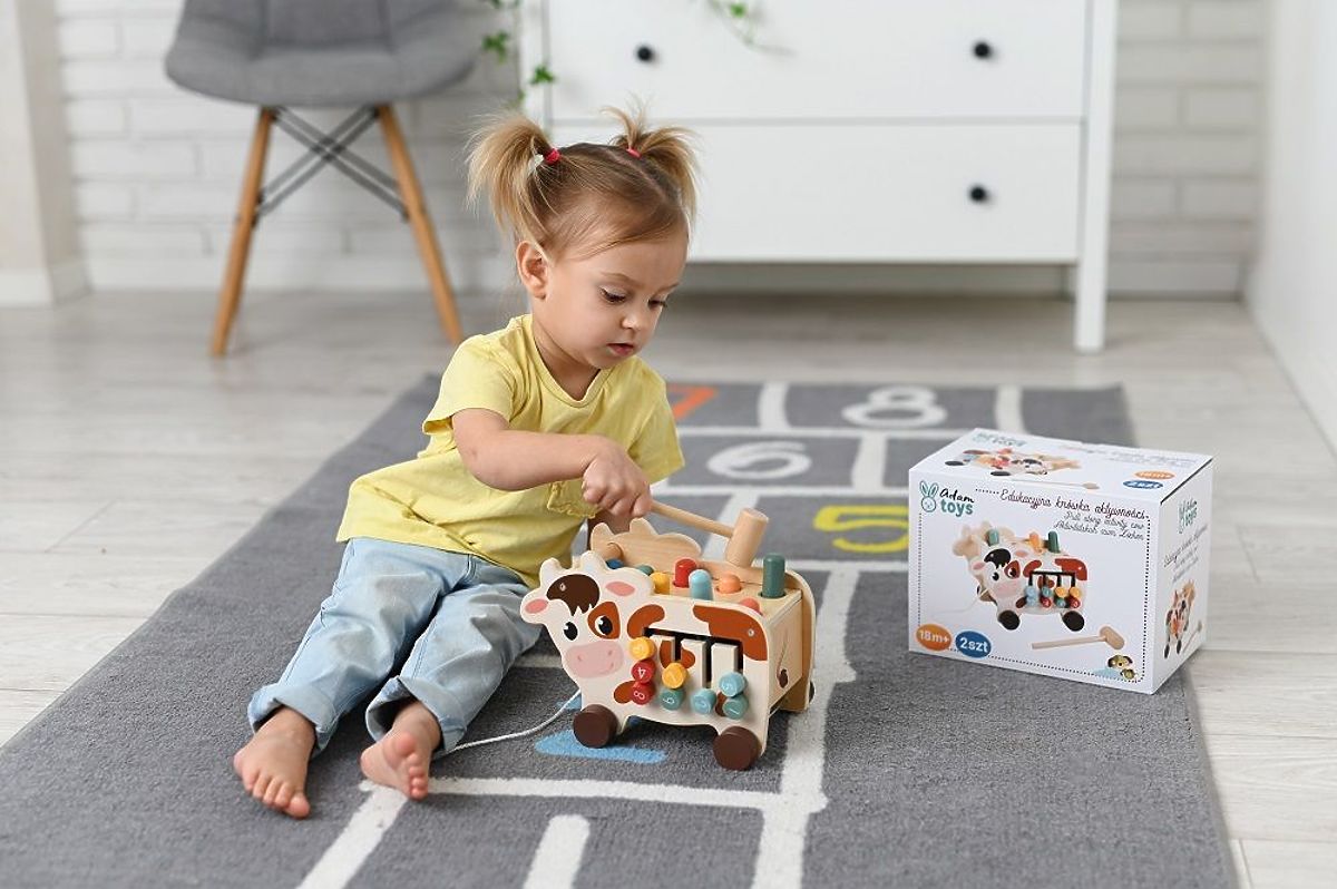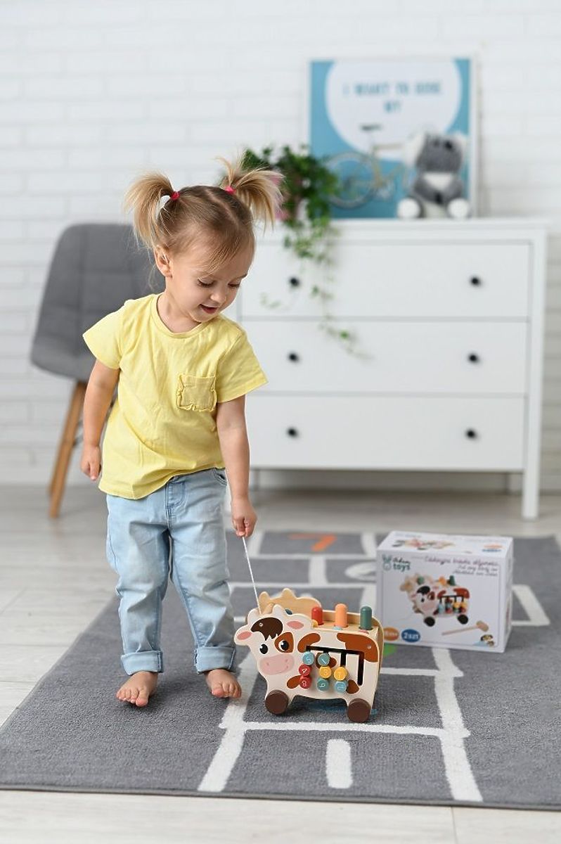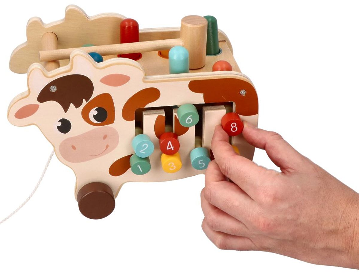 Kroz igru s kravicom dijete razvija svoju prirodnu znatiželju, uči kreativnom razmišljanju i razvija maštu. Lijepe boje i estetska izrada igračke značajno utječu na djetetovu percepciju, navikavajući ga na nove nijanse. Slatka kravica je drvena igračka koja ne samo da zabavlja i uči, već se i jako sviđa djeci.