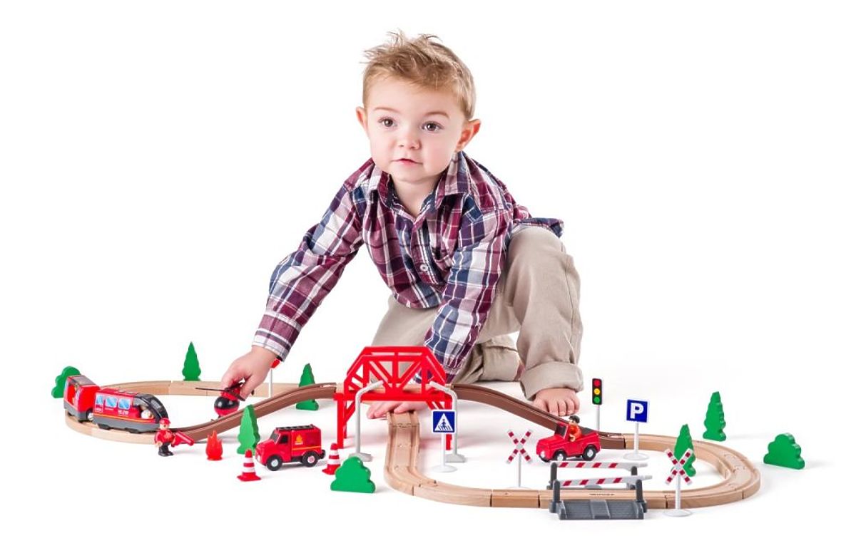 Drvena staza od češkog proizvođača igračaka Woody fantastičan je izbor za svakog trogodišnjaka koji sanja o tome da postane vatrogasac. Set sadrži ne samo cijelu željezničku infrastrukturu s mostom, prometnim znakovima i rampama, već i četiri vozila potrebna vatrogascima za odlazak na razne specijalne akcije.