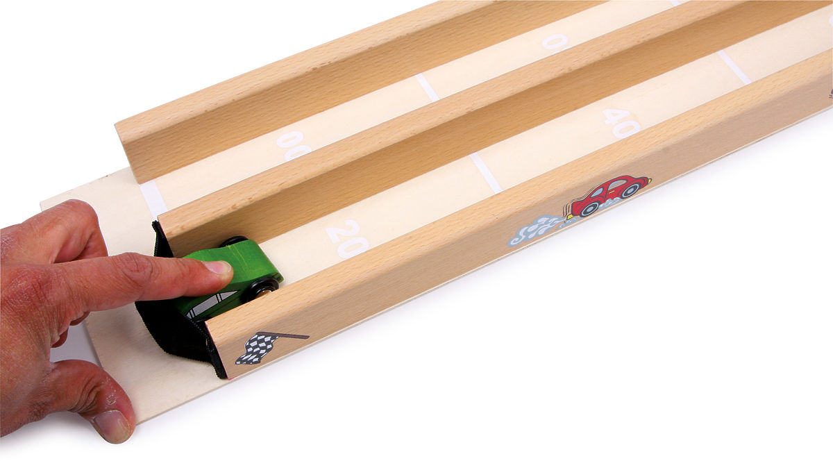 Dugačka utrkivačka rampa opremljena je gumenim lansiranjem. Samo povucite i auto će krenuti, a vi samo pratite koji autić uspije razviti veću brzinu. Sa strane .. više