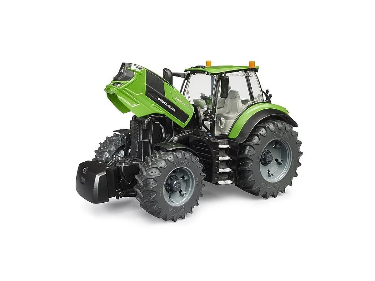 Traktor Deutz-Fahr 8280 TTV pouzdan je i snažan radni stroj s savršenom kombinacijom tehnologija za profesionalne poljoprivrednike. S impresivnom snagom od 287 KS, ovaj traktor može savladati svaki izazov. Model ovog traktora u mjerilu 1 : 16 vjeran je originalu. Kabina vozača je potpuno ostakljena, a vrata se lako otvaraju. Otvaranjem poklopca motora pruža se pogled na motor. Jednostavno upravljanje postignuto je zahvaljujući ugrađenoj osovini s klatnom i produženom upravljačkom volanu koji se može umetnuti kroz krovni prozor. Zahvaljujući visinski podesivom stražnjem priključku, mogu se koristiti sve prikolice profesionalne serije. Za još veću zabavu, dodana su nova odvojiva kotača. Na ovaj traktor odgovaraju sve poljoprivredne prikolice BRUDER i moguće ga je proširiti s Prednjim utovarivačem za traktore serije 3000 BR3333 i Mehaničarom s alatima BR62100. Glavne značajke: mjerilo 1 : 16prozirni i neprobojni plastični prozori kabineotvarajuća vrataotvarajući poklopac motoraodvojiva kotačaodvojivi prednji utegvučna naprava s visinski podesivim priključkomdržak za prednji utovarivačupravljiva i terenska prednja osovina s klatnomgume od meke plastikeupravljiv putem volana kroz krovni prozor traktoraodgovara za igru kod kuće i vaniizrađeno u Njemačkoj od visokokvalitetnih plastikasukladno s figuricama BRUDER bworld