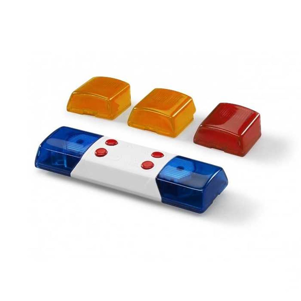 Univerzalni svjetlosni signal Bruder - sirena ima 4 različite funkcije - zvuk motora, policijsku sirenu, vatrogasnu sirenu i ton upozorenja. Ovaj svjetlosni signal se instalira umetnutjem u krovni otvor kabine i može se bilo kada zamijeniti. Pritiskom na jedno od gornjih gumba imitira zvuk motora, trubi ili pokreće sirenu. Ove 4 funkcije se uključuju pritiskom na male gumene tipke na vrhu svjetlosnog signala, a dodatno je moguće birati između tri boje zamjenjivih poklopaca koje se mogu međusobno kombinirati. Modul ima univerzalnu primjenu za osobna i teretna vozila. Baterije su uključene u pakiranje. Proizvedeno u Njemačkoj, od kvalitetnih materijala. Glavne značajke: univerzalni svjetlosni signal s 4 tona sirene, proizvedeno u Njemačkoj