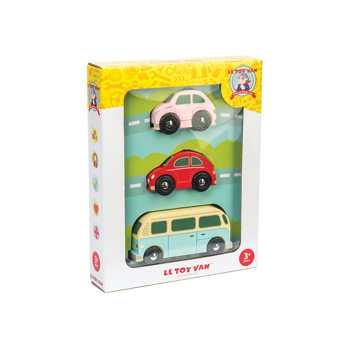 Set retro autića za svu djecu koja se vole igrati. Lijepa tradicionalna igračka u pastelnim i živim bojama inspirira djecu na maštovitu igru. Tri autića u pakiranju kompatibilna su s garažama, tepisima i željezničkim prugama Le Toy Van. Nagrađena igračka zasigurno će izmamiti osmijeh na dječja lica. Igračke s namjeromSve igračke tvrtke Le Toy Van izrađene su s ciljem – da dugo traju. Dizajnirane s ljubavlju iskusnih obrtnika koristeći etičke prakse i održive materijale koji su ljubazniji prema našem planetu. Glavne značajke: izrađeno etički od održivog drva testirano prema najstrožim standardima obojano netoksičnim bojama na bazi vode inspirira na maštovitu igru razvija kognitivne vještine Nagrade igračke: Independent Toy Gold Award 2016 Auta & građevine: Građevinska i motorička kolekcija Le Toy Van, koja je osvojila mnoge nagrade. Točnije, do sada preko 15 nagrada za maštovita auta i građevinske igračke. Podržavaju dječju maštu, idealne su za maštovitu igru, razvijaju kreativnost i poboljšavaju dječju koordinaciju ruka-oko.