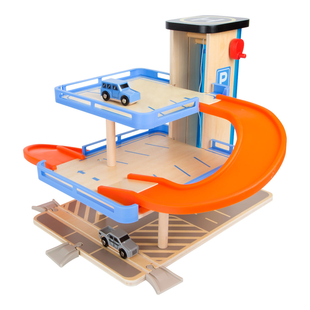 Prostrana garaža u atraktivnim bojama nudi tri kata povezana liftom i glatko povezanim rampama. Paket uključuje dva autića, tako da se djeca mogu igrati odmah .. više