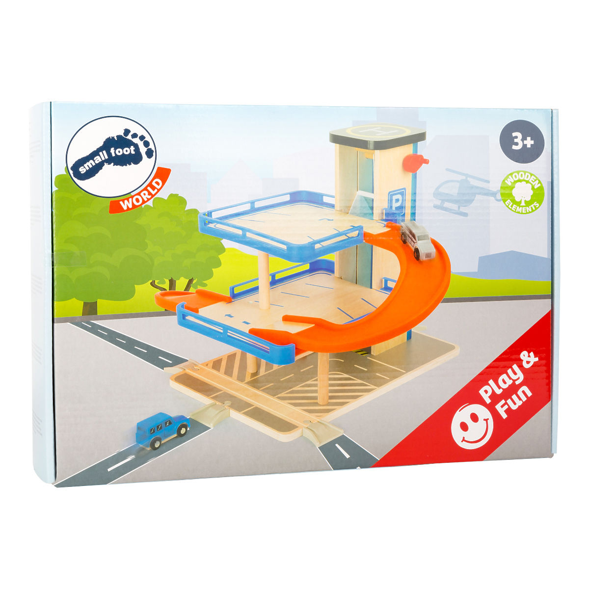 Prostrana garaža u atraktivnim bojama nudi tri kata povezana liftom i glatko povezanim rampama. Paket uključuje dva autića, tako da se djeca mogu igrati odmah nakon sastavljanja. Osnovni dijelovi od čvrste šperploče i masivnog drva nadopunjeni su robusnim plastičnim elementima, što igračku čini posebno izdržljivom i dugotrajnom. Može se proširiti s mnogo dodataka i potpuno je kompatibilna s vlakovima drugih velikih proizvođača. Proizvod zahtijeva montažu, isporučuje se s ilustriranim uputama za sastavljanje. Glavne značajke: garaža i 2 autića, 3 kata, 2 rampe i funkcionalni lift, robusna i izdržljiva izvedba, kompatibilna i s vlakovima drugih proizvođača.