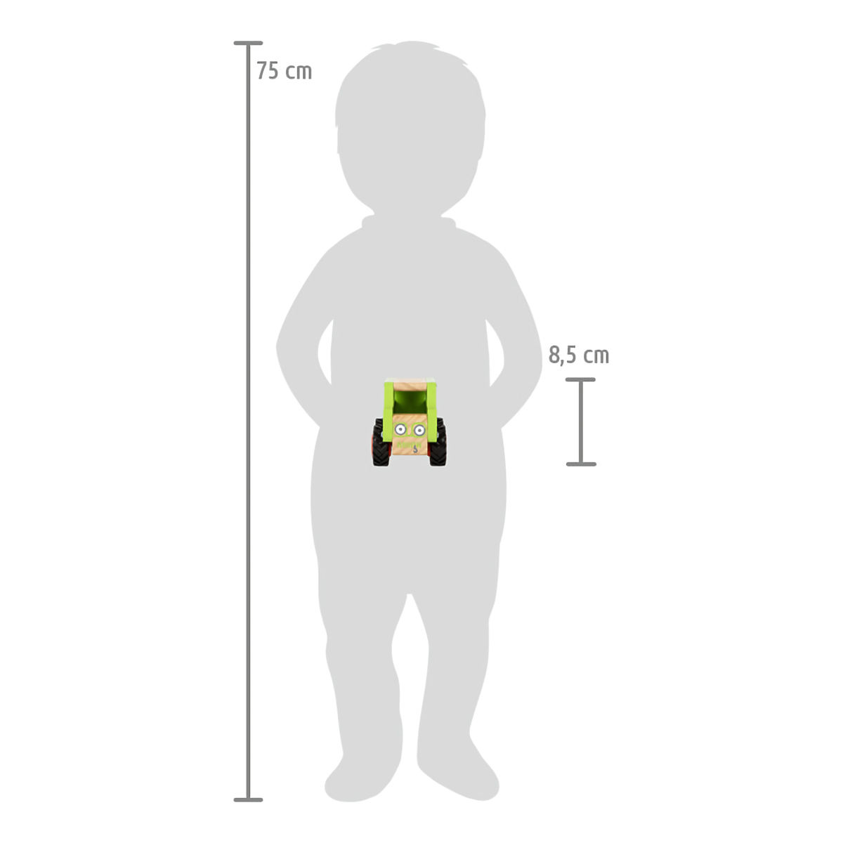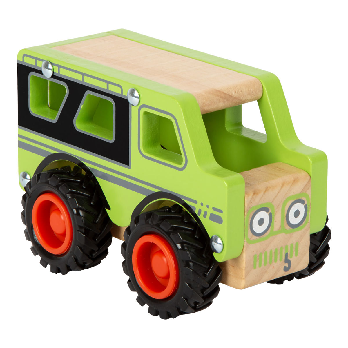 Robustan i izdržljiv automobil izrađen od masivnog, održivo dobivenog drva. Ima prostranu, otvorenu kabinu u koju se može smjestiti figura vozača. Gumeni kotači .. više