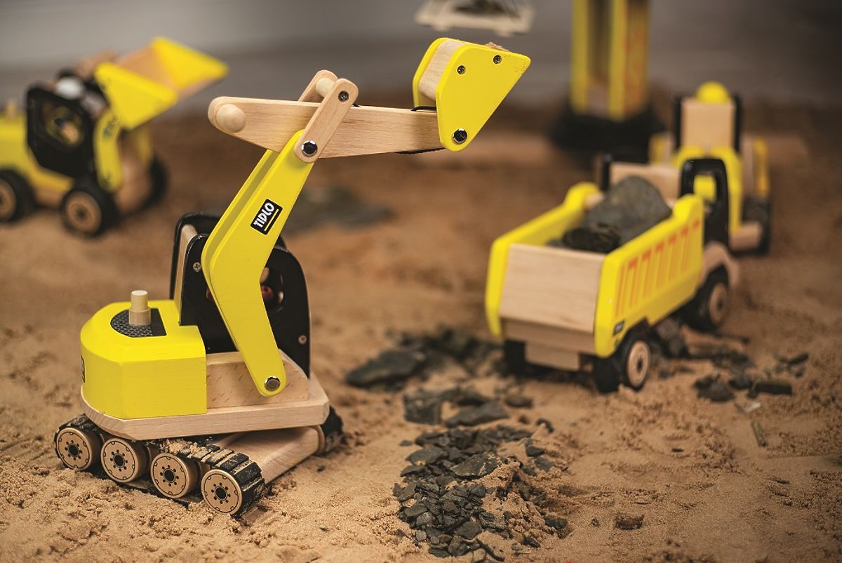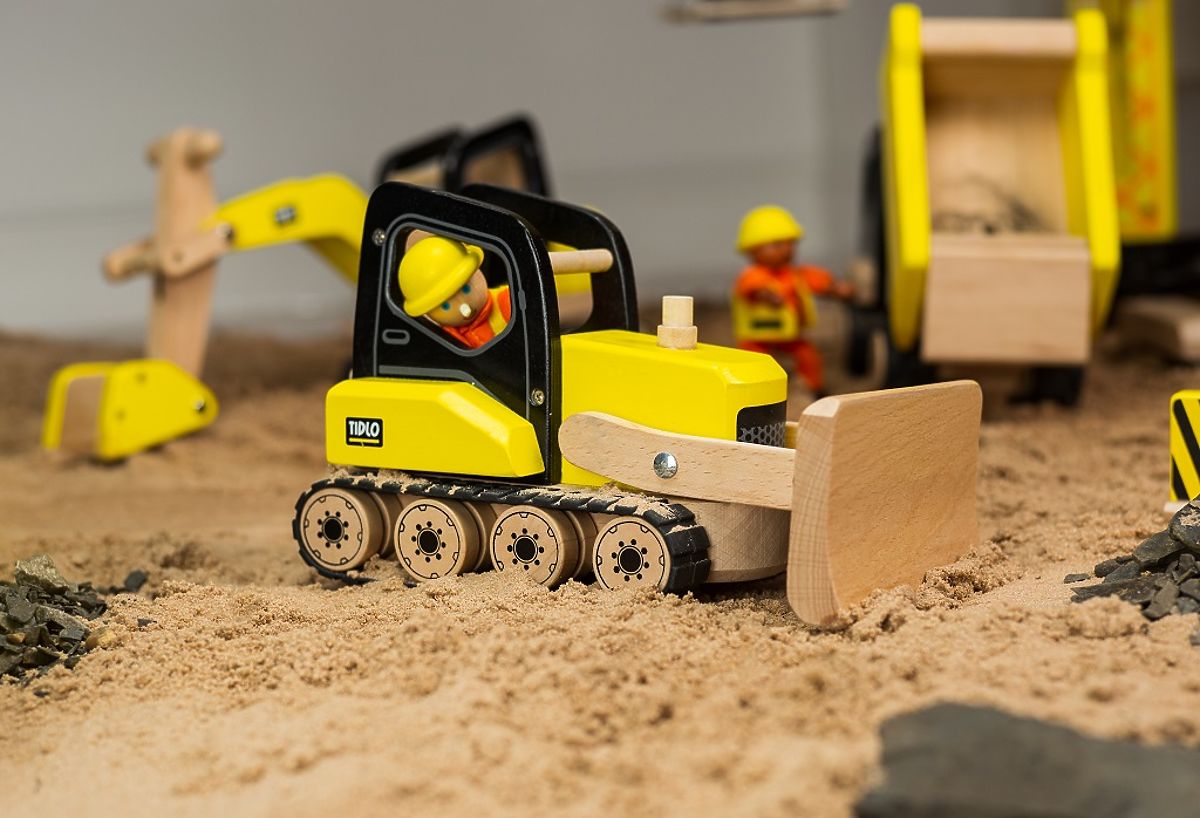 Ovaj masivni, detaljni, drveni bager rotira se za punih 360° i djeca mogu koristiti potpuno funkcionalnu kašiku za kopanje u svim smjerovima. Bager čak ima i funkcionalni gusjeničarski pogon, što ga čini vrlo sličnim stvarnom vozilu. Ima zaobljene oblike i dizajniran je tako da ga male dječje ruke lako mogu uhvatiti. Otvoren je s vrha, tako da se u njega lako mogu staviti figurice graditelja. Podržava kreativnost i maštu, razvija koordinaciju ruka-oko i finu motoriku. Izrađen je od kvalitetnih materijala iz odgovornih izvora. U skladu je s europskim sigurnosnim standardima. Glavne značajke: rotira se za 360° funkcionalni gusjeničarski pogon lako se hvata podržava kreativnost i maštu jednostavno umetanje figurica graditelja