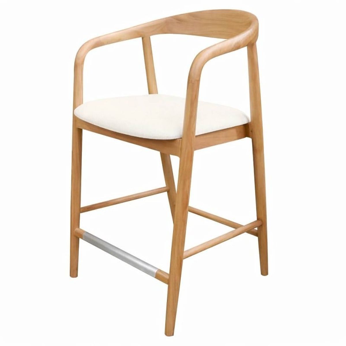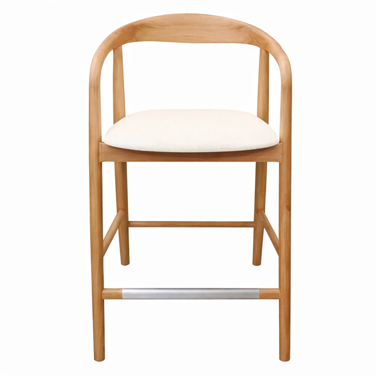 Zaobljeni barski stolac od tikovog drva s krem tkaninom. .. više