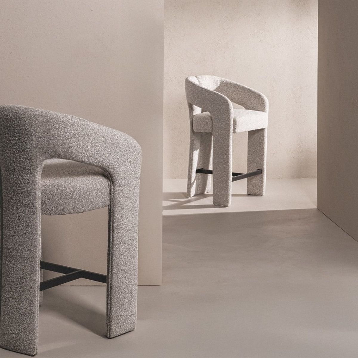Barska stolica Castelo kombinacija je modernog minimalizma i ugodne elegancije. Mekana tkanina, zaobljeni oblik i udobni nasloni za ruke osiguravaju svakodnevnu udobnost, dok sofisticirani detalji čine je idealnom za kuhinju ili blagovaonicu.