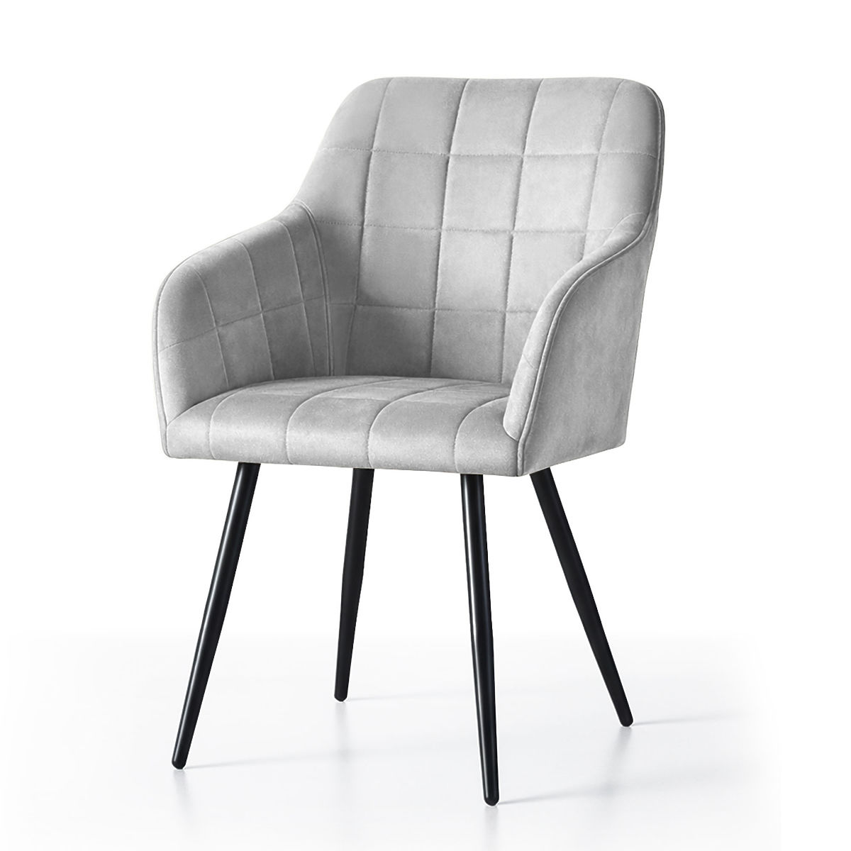 Banaby.hr » Namještaj / Blagovaonica / Blagovaonske stolice / 4x Tapecirana stolica s kvadratnim prošivom Siva LUXANO Crne noge