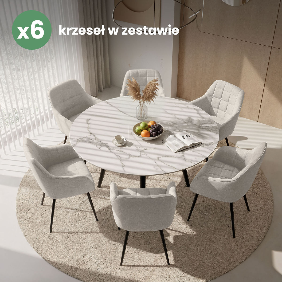 Banaby.hr » Namještaj / Blagovaonica / Blagovaonske stolice / 6x Tapecirana stolica s kvadratnim prošivom Krem LUXANO Crne noge tkanina Lumos