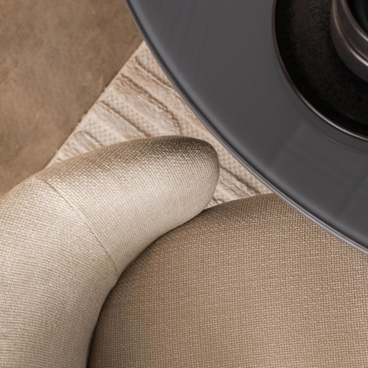 Stolica Larisa s bež presvlakom i crnim nogama za eleganciju i udobnost. .. više