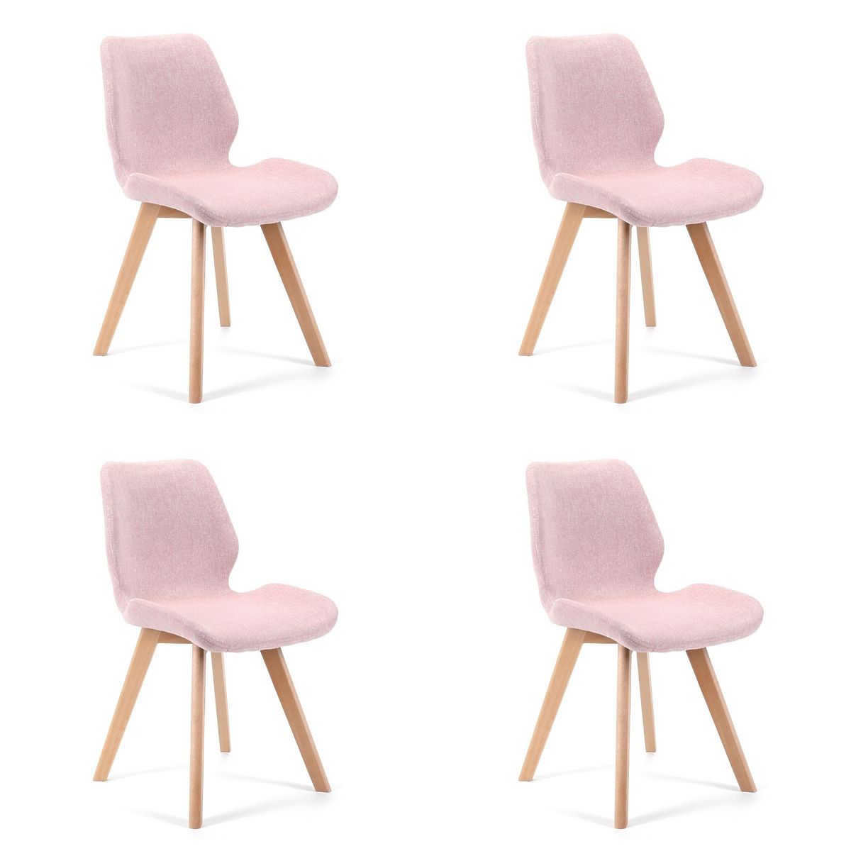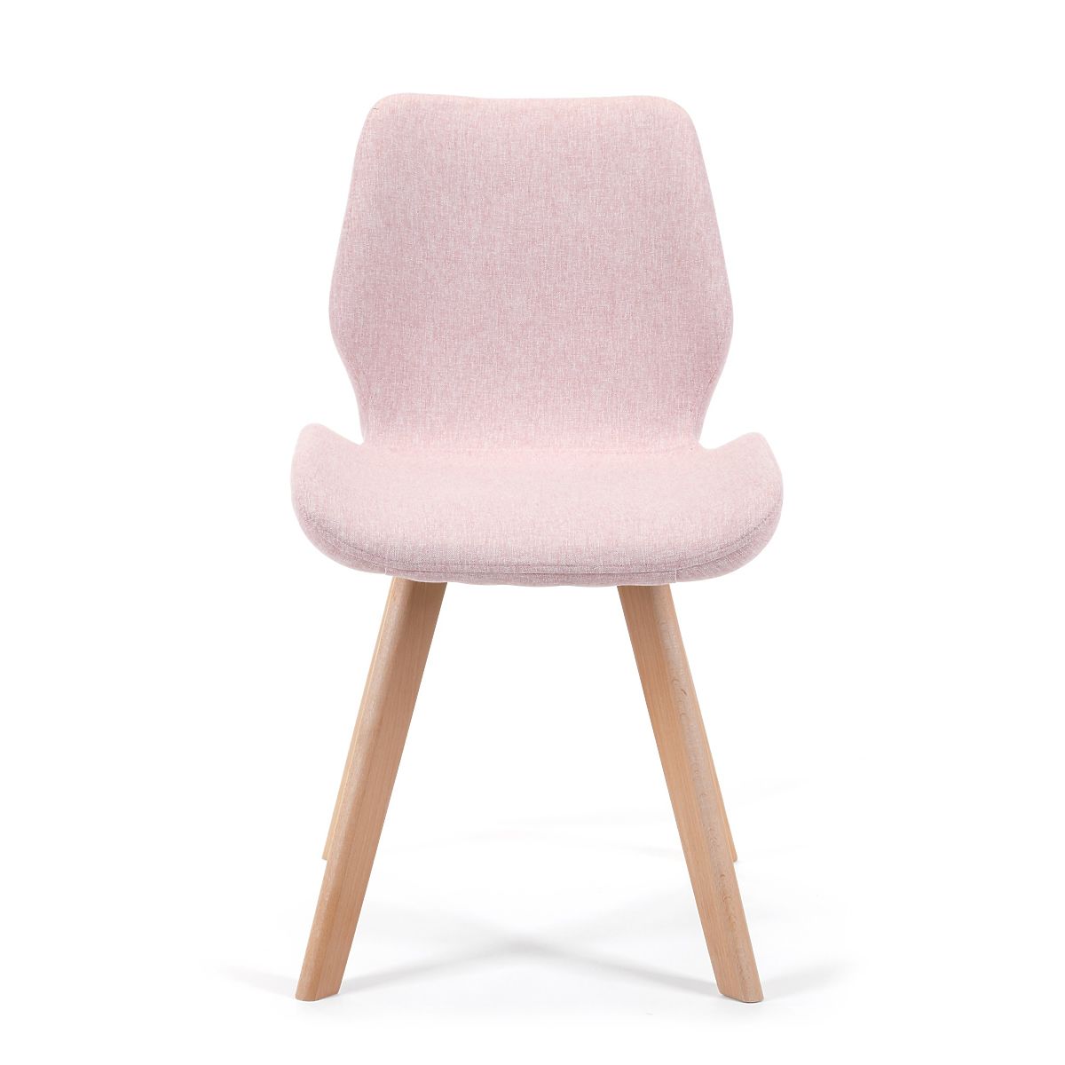 Stolica u skandinavskom stilu s drvenim nogama i ružičastom tkaninom. .. više