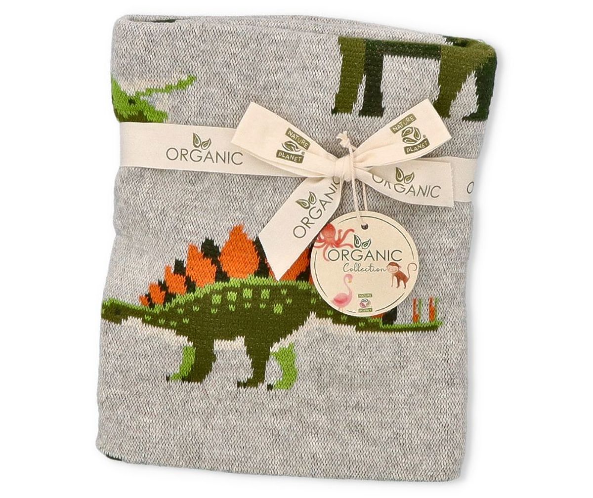 Deka Dinosauri od organskog pamuka idealan je izbor za dječju sobu, koja spaja prirodu i moderan dizajn. Deka je izrađena u prirodnoj, sivoj boji s motivom dinosaura. Odlično će transformirati dječji kutak i dodati mu jedinstven karakter. Deka se odlično uklapa u kolica, kolijevku ili krevetić. Idealna za piknik ili izlet. Deka je izdržljiva i ugodna na dodir, može služiti djetetu dugi niz godina.