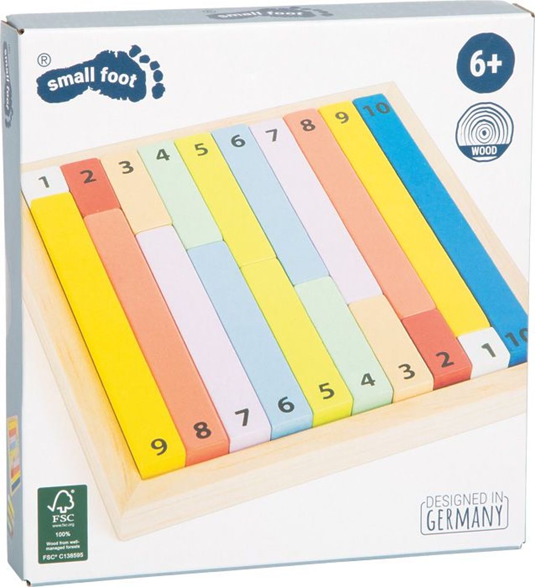 Dimenzije baze: 17,5 x 17,5 cm Dimenzije kocki: od 1,5 x 1,5 cm do 1,5 x 15 cm Materijal: lakirano drvo Dob: 4+ Referenca: 111167 Izjava o sukladnosti CE
