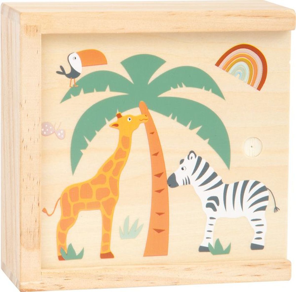 Tradicionalna igra za cijelu obitelj u drvenoj izvedbi. Vrlo jednostavna pravila omogućuju igru i s malom djecom. Tijekom igre djeca će se upoznati s stanovnicima savane. Visokokvalitetne ilustracije, lijepa izvedba i moderna paleta boja. Odlično je pogodna i za putovanja. Memorijska igra je izvrsna vježba za pamćenje i pažnju.