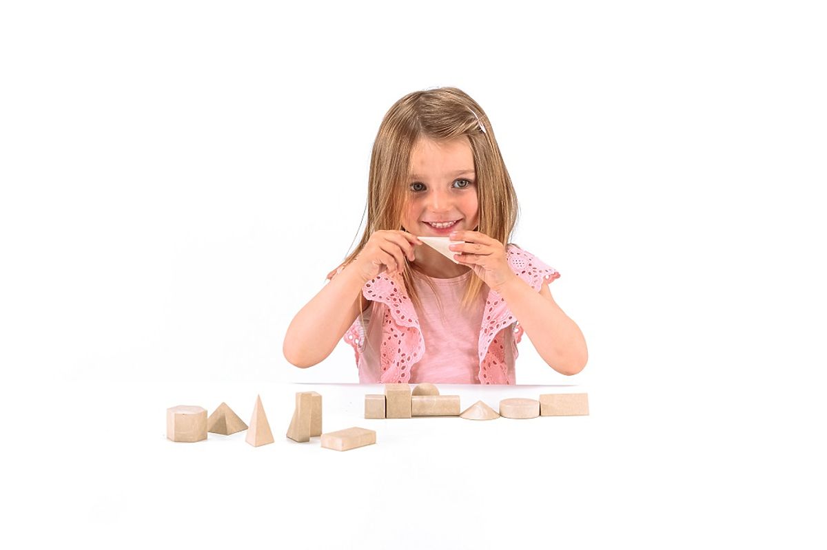 14 različitih drvenih geometrijskih tijela koja služe za igru, ali su također prikladna kao nastavno pomagalo. Možete li ih sve pravilno prepoznati i imenovati? Zahvaljujući ovim kockama, dijete će steći pojam o riječima kao što su površina, rub, kut, strana, dijagonala, dužina, pravi kut ili okomica. Pokažite mu kako izgleda kocka, kvadar, prizma, valjak, piramida, stožac ili kugla. Izrađeno od 100% recikliranih materijala, ima PEFC certifikat i nakon upotrebe može se ponovno reciklirati. Glavne značajke: sadrži 14 dijelova, prikladno kao nastavno pomagalo za rano učenje geometrije, proizvedeno u Njemačkoj
