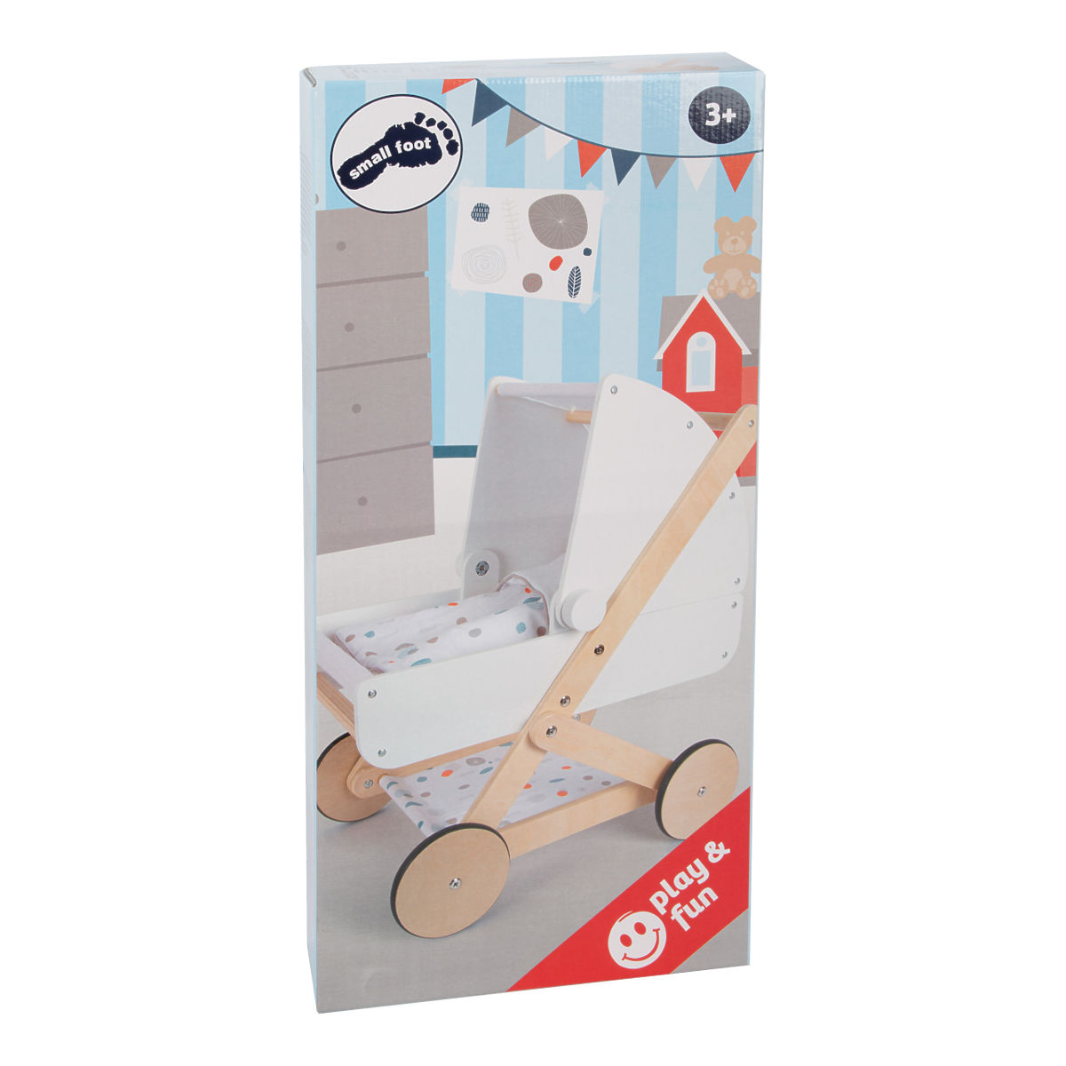 Za lutke, plišane igračke i njihove prijatelje samo najbolje! Ova moderna kolica za lutke impresionirat će vas svojim nježnim, linearnim skandinavskim dizajnom i također prostorom za pohranu ispod ležaljke. Zahvaljujući sklopivom krovu, lutke i plišane igračke mogu gledati naprijed ili unatrag. Obostrana i rodno neutralna posteljina s prevelikom dekom osigurava udobnost za lutke i plišane igračke do 46 cm. Kolica imaju tihe gumirane kotače. Moderna kolica s elementima od prirodnog drva, s perivim tekstilom, samo čekaju tko će se u njima voziti! Vrlo su stabilna unatoč svojoj maloj težini, prikladna su za svaku sobu zahvaljujući svom neutralnom dizajnu. Glavne značajke: 2u1: Zahvaljujući sklopivom krovu, lutke i plišane igračke mogu gledati naprijed ili unatrag Praktičan prostor za pohranu ispod ležaljke Gumirani kotači za tihu i sigurnu vožnju Stabilna konstrukcija unatoč maloj težini Prikladna za lutke i plišane igračke do 46 cm Zaobljeni rubovi i vidljivi drveni elementi Obostrana rodno neutralna posteljina, prevelika deka Skandinavski dizajn, paleta nježnih boja, elementi iz serije „Little Button“ Little Button Serija atraktivne opreme za lutke Little Button nudi raznolik asortiman proizvoda, od kolica preko stolice za hranjenje do ormara. Kupce lako privlače jedinstvenim funkcionalnim i decentnim dizajnom koji koristi ravne linije i suzdržane neutralne boje. Zahvaljujući tome, mogu zajedno stvoriti cjelovite harmonične setove koji ukusno nadopunjuju moderan interijer. Promišljena konstrukcija i kvalitetna izrada pomažu osigurati visoku stabilnost, sigurnost i dugovječnost. Uz njihovu pomoć, stvorite stilski kutak za lutke gdje vaša djeca mogu razvijati svoju maštu i vještine brige.