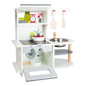Dimenzije kuhinja za djecu uvijek su takve da se lako mogu uklopiti u dječju sobu. Dječja kuhinja se sastoji od kuhinjskog seta (pećnica, napa, sudoper i drugih) te različitog kuhinjskog pribora. Različite vrste dječjeg pribora za kuhanje dostupne su na odabir i pojedinačno.