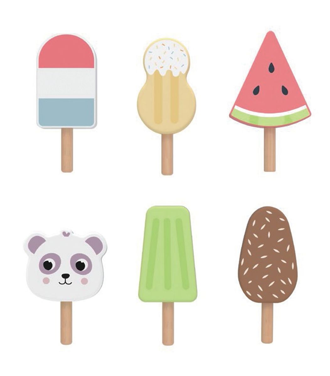 Kako je vruće! Što kažete na nešto hladno? Odaberite između šest različitih sladoleda na štapiću. Želite li čokoladni, vanilin ili možda lubeničin? Set sladoleda na praktičnom postolju postat će nezamjenjiv dodatak svakoj kuhinji. Igra uloga razvija komunikacijske vještine djece, rječnik i maštu. Igračka je izrađena od kvalitetnog FSC drva. Glavne značajke: postolje sa 6 sladoleda, razvija komunikacijske vještine, potiče maštovitu igru, izrađeno od drva s FSC® certifikatom, pogodno za djecu od 2 godine. Marka i certifikat FSC® (Forest Stewardship Council) jamče da drvo od kojeg je proizvod izrađen nije ilegalno posječeno i dolazi iz šuma koje se održavaju na ekološki prihvatljiv ili prirodi blizak način, u kojem se poštuju strogi ekološki i socijalni zahtjevi. FSC® oznaka na proizvodu znači da svojim kupnjom pomažete zaštiti šume i podržavate ekološki prihvatljivo, odgovorno ili prirodi blisko gospodarenje, zahvaljujući kojem su naše šume stabilnije, zdravije, imaju prirodan sastav vrsta i bolje odolijevaju negativnim posljedicama klimatskih promjena.