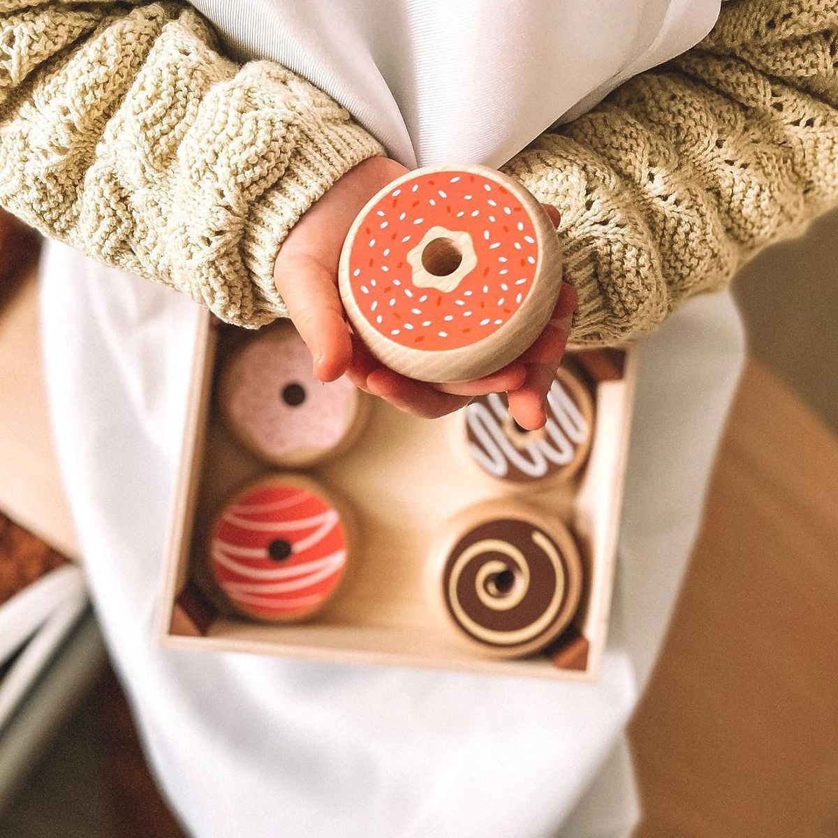 Drvena kutija s krafnama koje izgledaju realistično i vrlo ukusno. Možete ih pojesti sami ili podijeliti s drugima! Savršena igračka koja djecu upoznaje s .. više