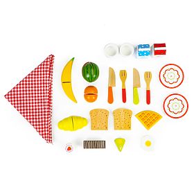 Dječja košara za piknik s dodacima, drvenim voćem i povrćem bit će izvrstan dodatak dječjim kuhinjama ili trgovinama. Uz ovaj set vaša će se djeca jako zabavljati.