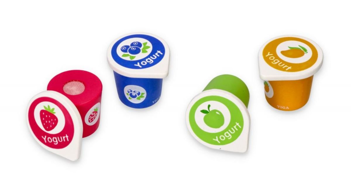 Djeca će voljeti šarene jogurte koje mogu igrati u svojim malim kuhinjama. Uz to, jogurti se mogu otvoriti jer je poklopac čičak.
