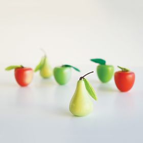 Jabuke i kruške s tržnice! Ovo je voće ručno izrađeno od održivog gumenog drva s listovima od filca koji su također ručno izvezeni. Kompatibilan s kolekcijom .. više