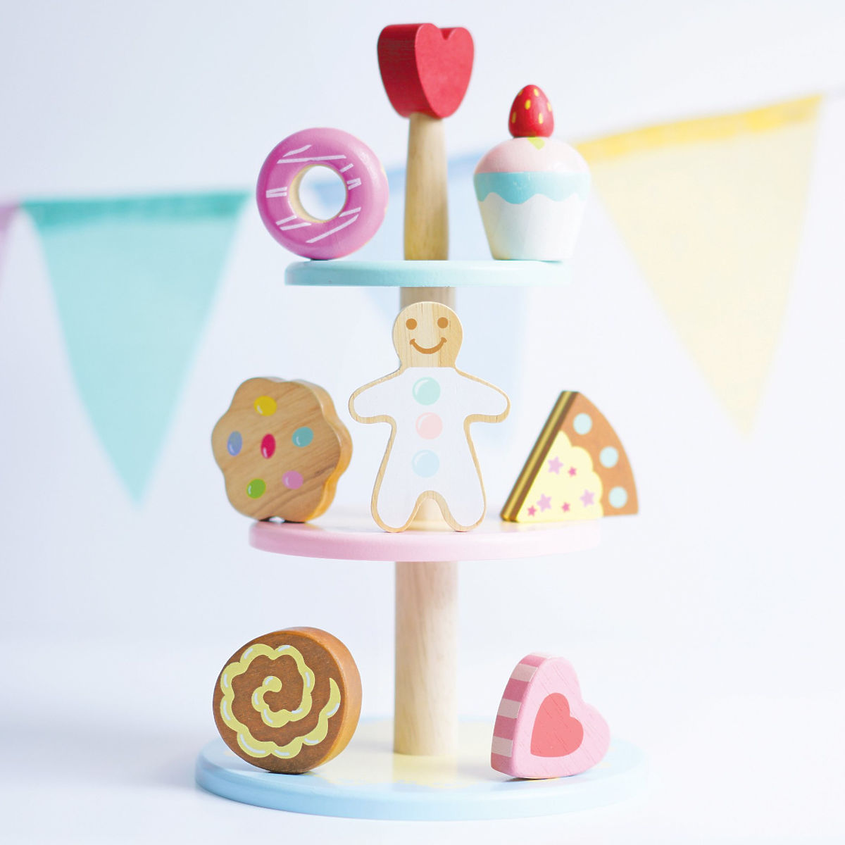 Uživajte s ovim troslojnim tanjurom punim kolača. Među sedam kolača pronaći ćete medenjak, krafnu, roladu, cupcake, keks... Tanjuri su u različitim pastelnim bojama. Svi elementi igračke izrađeni su od masivnog drveta, s zaobljenim rubovima koji su sigurni za djecu. Kvalitetan i detaljan proizvod inspirira djecu na kreativnu igru. Kolače mogu ponuditi tijekom maštovitog popodnevnog čaja s plišancima. Igračke s namjeromSve igračke tvrtke Le Toy Van izrađene su s ciljem – da dugo traju. Dizajnirane s ljubavlju iskusnih obrtnika koristeći etičke prakse i održive materijale koji su ljubazniji prema našem planetu. Glavne značajke: etički proizvedeno od održivog drva testirano prema najstrožim standardima obojano netoksičnim bojama na bazi vode inspirira na maštovitu igru razvija kognitivne vještine Kolekcija Honeybake: Igračke u ovoj kolekciji prikladne su za istraživanje, pomažu djeci u razvoju mašte, socijalnih i verbalnih vještina te kognitivnih funkcija. Tradicionalni dizajn s modernim detaljima zasigurno će zabaviti djecu. Honeybake je kolekcija Le Toy Van koja je osvojila najviše nagrada, i to za dizajn, kvalitetu, sigurnost te za obrazovnu i igračku vrijednost.