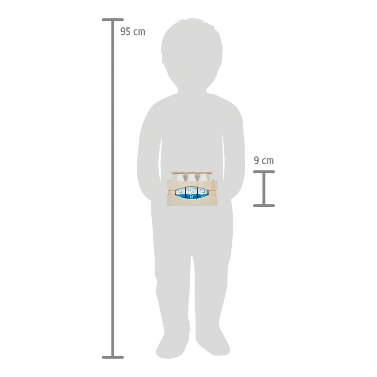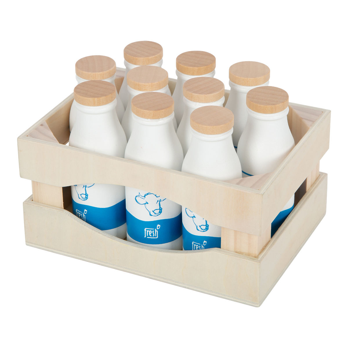 Što bi bio dječji prodajni štand bez mlijeka? U robusnu gajbu stane 10 boca mlijeka, igračka je savršena za realističnu igru u kuhinji ili pri prodaji. Zahvaljujući jednostavnim ilustracijama, lako je razumljiva i najmlađoj djeci. Djeca mogu kupiti mlijeko u dućanu i kuhati s njim. Igračka potiče djecu na igru uloga. U kombinaciji s ostalim proizvodima iz linije "Fresh" uživat će u pravoj zabavi. Glavne značajke: robusna drvena gajba s 10 drvenih boca mlijeka, idealan dodatak dječjim kuhinjama i prodajnim štandovima, realistična igračka koju lako razumiju i najmanja djeca, kompatibilna s ostalim proizvodima iz linije "Fresh"