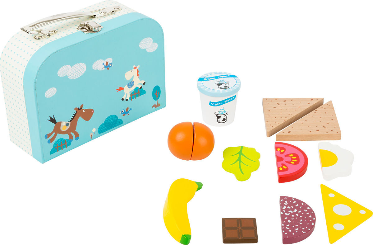 Small Foot Plava kutija za užinu Njemačka tvrtka Legler specijalizirana za proizvodnju kvalitetnih drvenih igračaka od 1996. godine. Sve drvene igračke marke small foot imaju oznaku CE i proizvedene su prema europskoj normi za sigurnost igračaka EN 71. Korištene boje posebno su razvijene za drvene igračke i otporne su čak i na dječju slinu. Drvo koje se koristi za ove igračke uglavnom dolazi od šumarskih društava uključenih u pošumljavanje. To svim kupcima nudi mogućnost doprinosa očuvanju prirodno rastućih šuma. Drvene igračke small foot su živopisni proizvodi izrađeni uglavnom od prirodnih sirovina - drva. Djeci donose radost od najranije dobi, razvijajući njihove taktilne i osjetilne vještine. Cilj marke small foot je podržati mentalni i fizički razvoj djece.