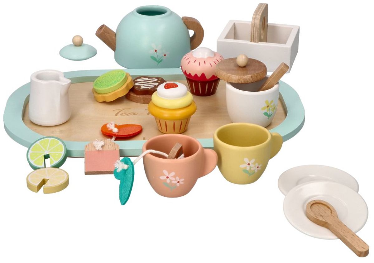 Uronite u svijet čajanki s ovim prekrasnim drvenim setom ukrašenim nježnim cvjetovima. Pastelne boje i nježni cvjetni uzorci prenijet će svako dijete u čarobni .. više