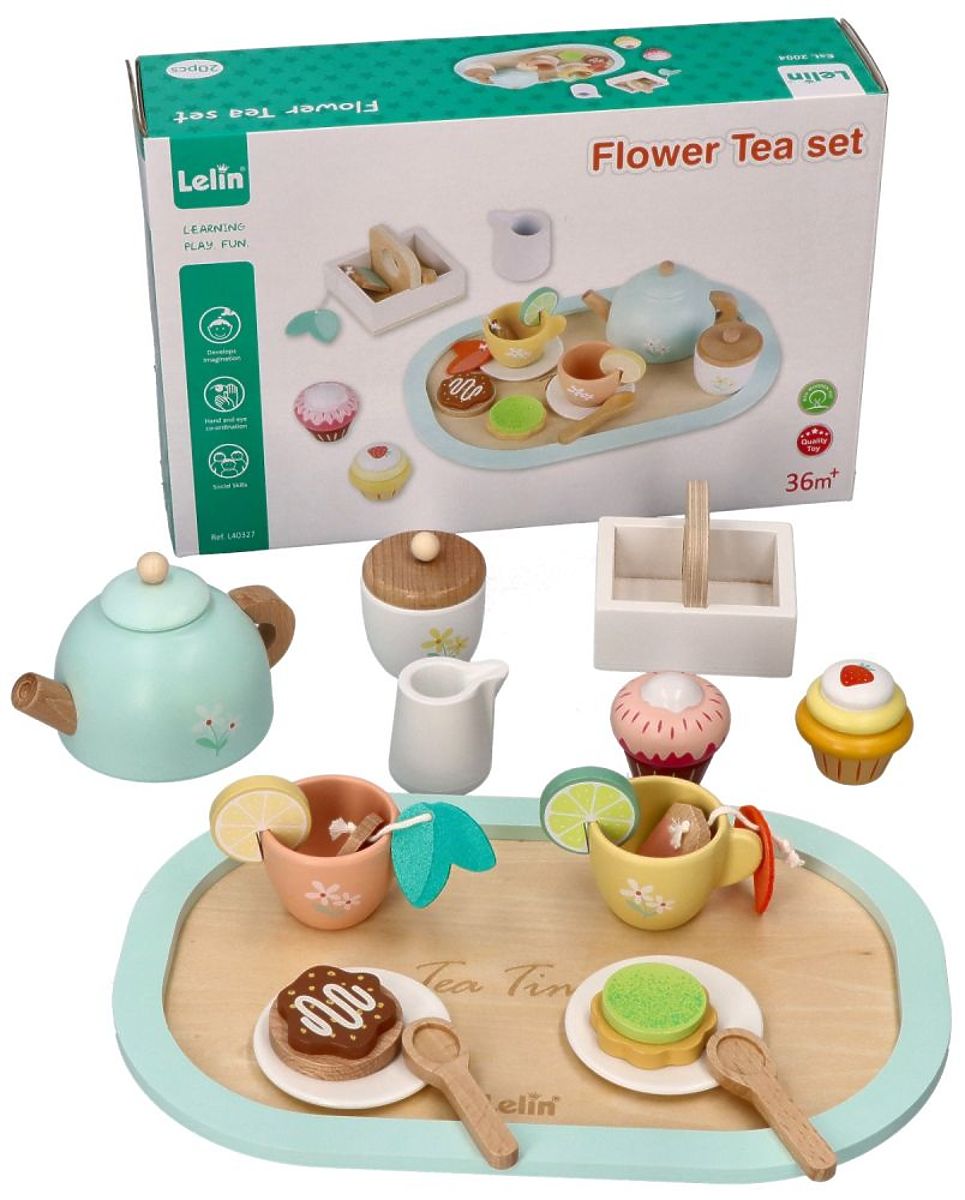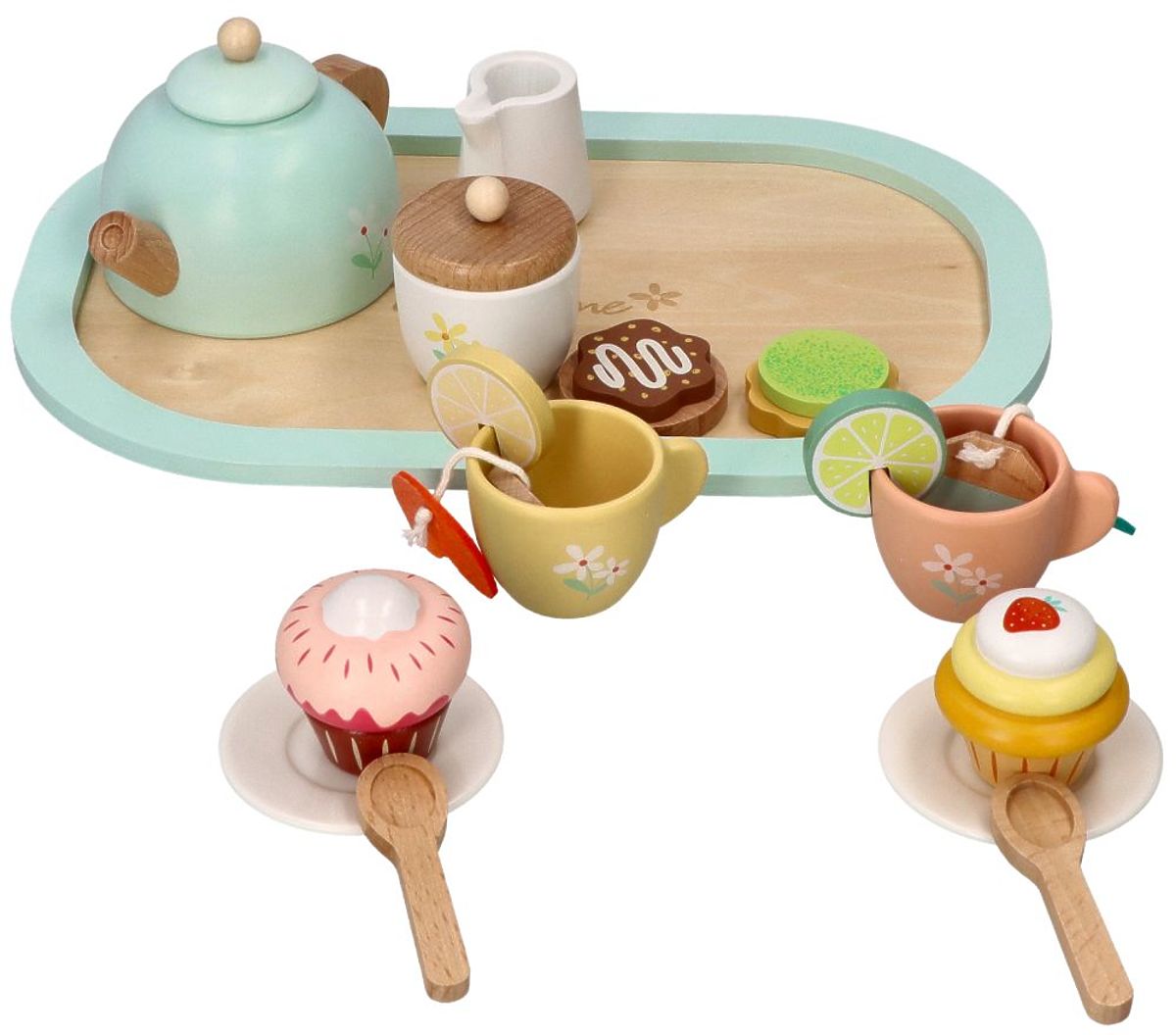 Uronite u svijet čajanki s ovim prekrasnim drvenim setom ukrašenim nježnim cvjetovima. Pastelne boje i nježni cvjetni uzorci prenijet će svako dijete u čarobni svijet mašte, gdje igra postaje prava umjetnost gostoprimstva. Sve je izrađeno od prirodnog drva i sigurno je za male ruke. Cvjetni motivi dodaju čaroliju i čine set prikladnim ne samo za igru, već i kao ukras dječje sobe.