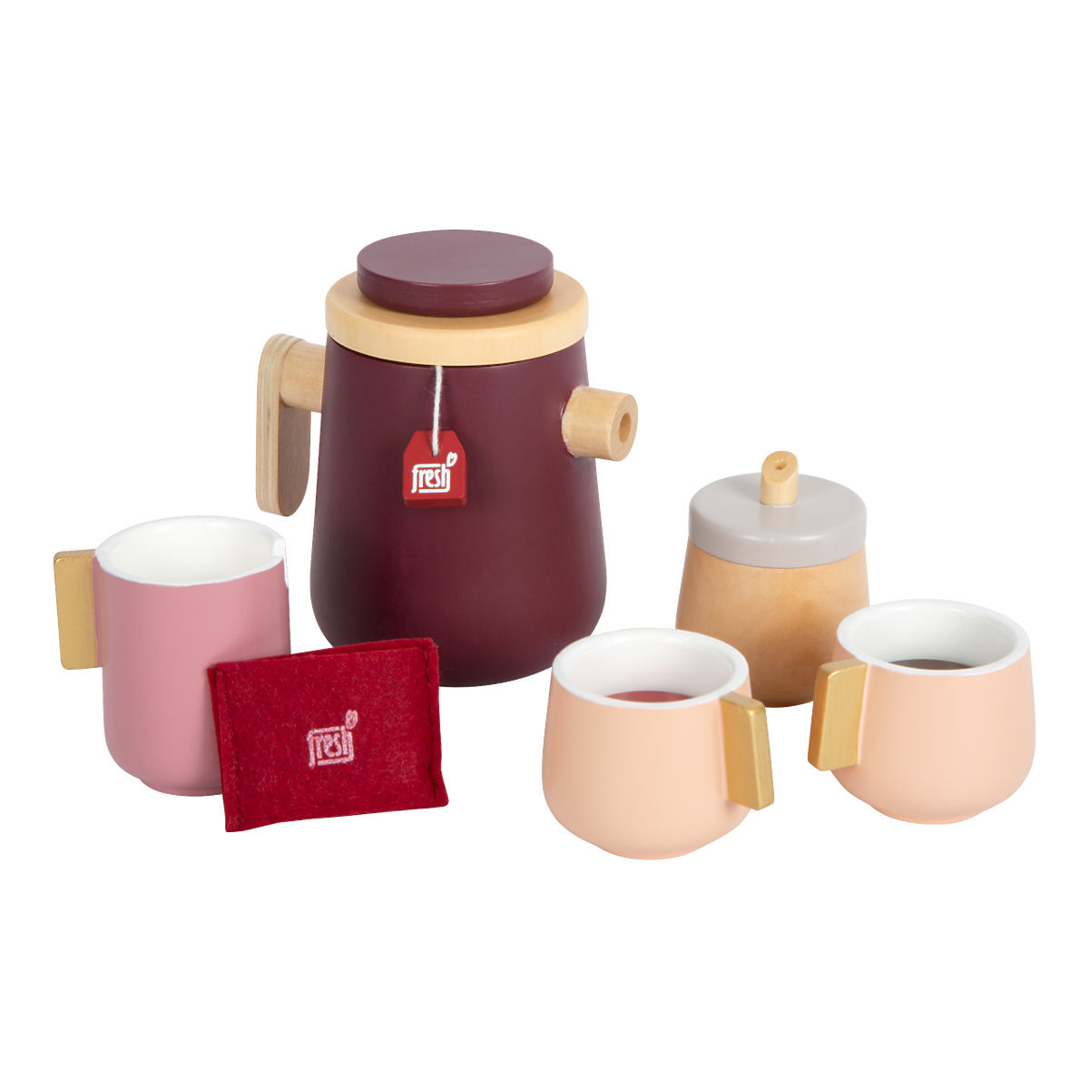 Skandinavski dizajn u kuhinji vašeg djeteta. U modernom setu za čaj ili kavu za dvije osobe pronaći ćete šalice, tanjuriće, žličice, posudu za šećer, posudu za mlijeko, vrč, mnogo hrane (nije prava), poput šlaga, čajnog vrećice i muffina. Integrirani magnet pomaže u maštovitoj igri, slastice se mogu smjestiti na desertni tanjur. Robusni dodaci dječje kuhinje imaju jednostavne oblike, zaobljene rubove i moderne boje, poput dimno plave, tamno crvene i borovnice. Ručke šalica i posude za mlijeko su zlatne. Igračka ima mnogo vidljivog drva, borovnice i šlag na muffinima drže se pomoću magneta, a možete ih također umiješati u napitke. Poklopac na posudi za mlijeko i šećer je odvojiv. Kompatibilan s ostalim proizvodima iz linije "Tasty". Glavne značajke: čajni i kavni set ne samo za dječje kuhinje izrađen od robusnog drveta u pakiranju šalice, tanjurići, žličice, posuda za šećer, posuda za mlijeko, vrč, grickalice, desertni tanjur jednostavni oblici, zaobljeni rubovi, moderne boje, zlatni detalji i mnogo vidljivog drveta šlag i borovnice drže se pomoću magneta kompatibilan s ostalim proizvodima iz linije "Tasty" trenira socijalne vještine