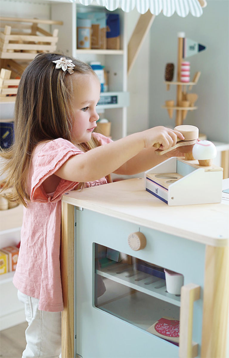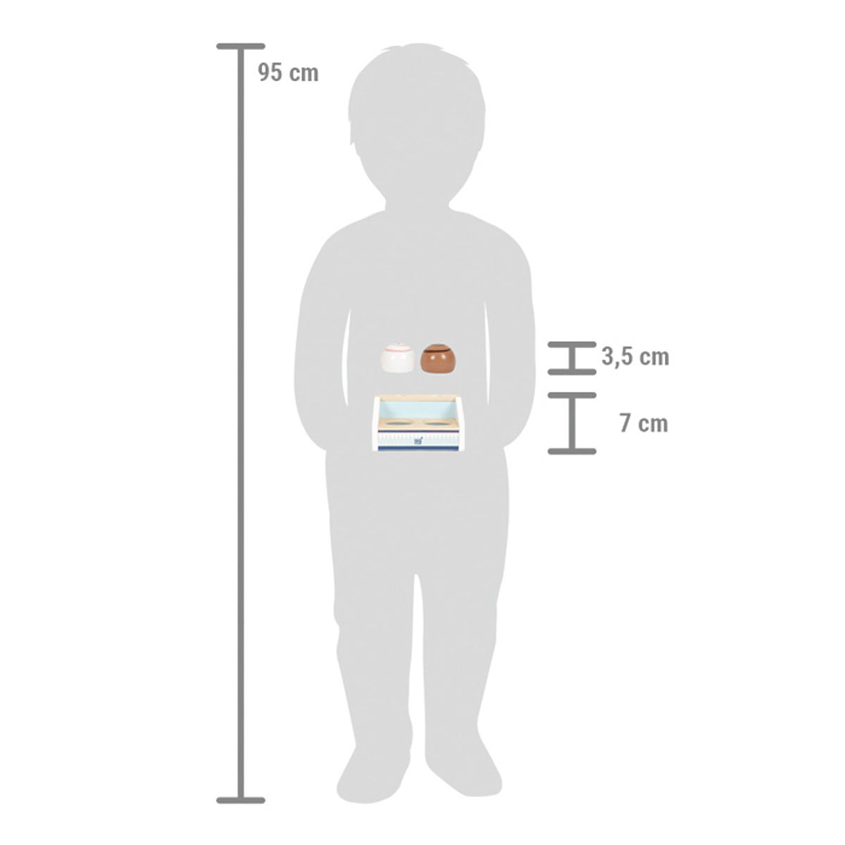 Danas imamo sladoled! Ovaj zaslon s dvije pregrade, zahvaljujući svom minimalističkom dizajnu i prirodnom materijalu, savršeno se uklapa u male kuhinje svake dječje sobe! Sadrži žlicu, kornete i složive kuglice sladoleda (ove kuglice se također mogu slagati zahvaljujući svojim magnetima). Vrhunac seta za igru je magnetska žlica za sladoled – jednostavnim pritiskom na gumb možete staviti sladoled na kornet! Glavne značajke: rodno neutralna shema boja, prikladan dodatak za proizvode LE11815, LE12417 ili LE12232, žlica, korneti i složive kuglice sladoleda imaju magnete, igra podržava komunikacijske vještine i kreativnost
