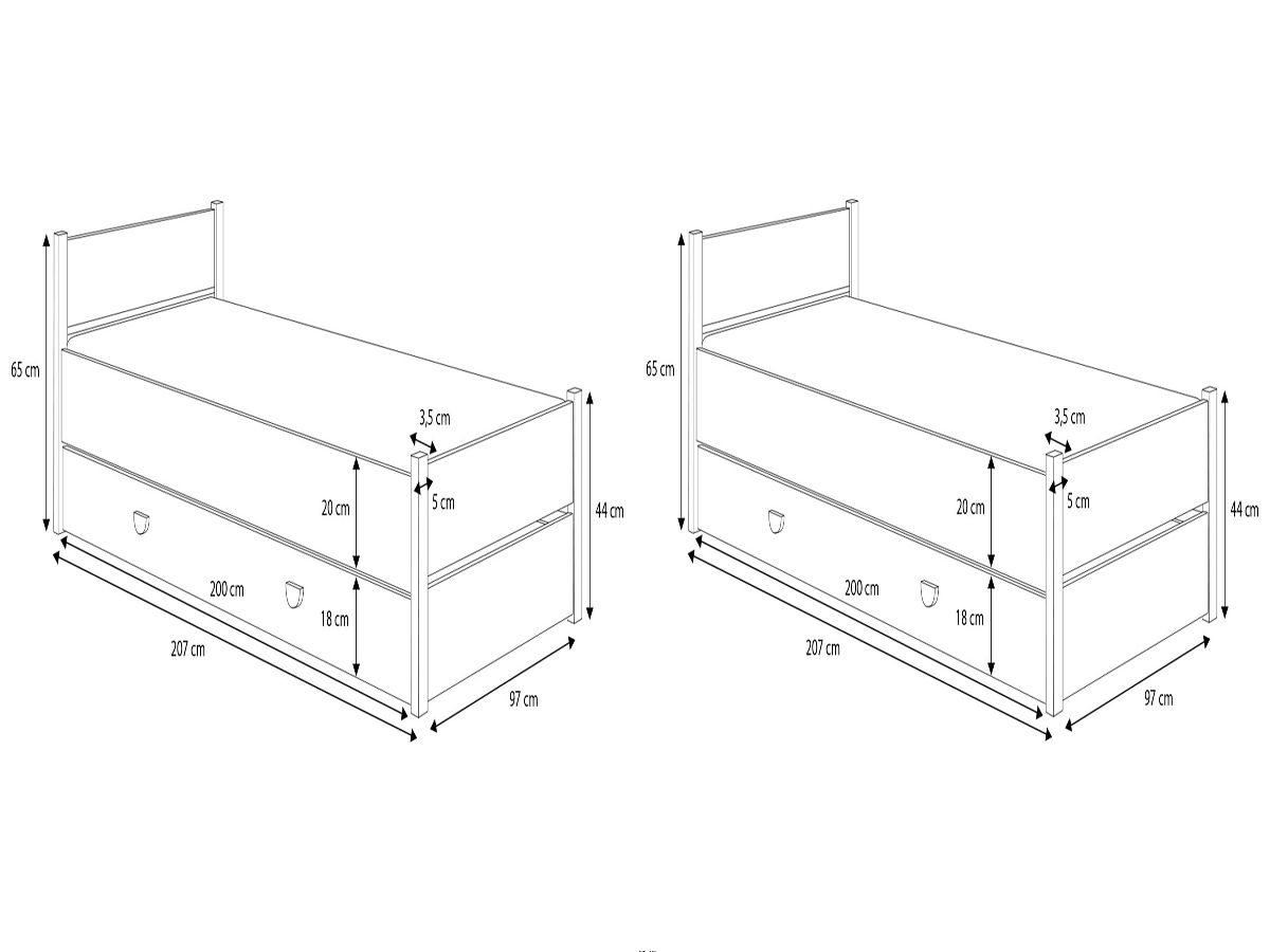 Krevet je izrađen od izdržljivih materijala – okvir s drvenim elementima prekrivenim vodenim lakom i laminirana ploča debljine 18 mm, pažljivo završena ABS rubom, jamče stabilnost i dugovječnost konstrukcije. Zahvaljujući FLEX podnici, izrađenoj od elastičnih letvica, pruža optimalnu potporu za kralježnicu i udoban san. Uključuje pjenasti madrac debljine 8 cm, opremljen skidivom navlakom, što olakšava održavanje čistoće i higijene. Dodatna prednost kreveta Marcel je praktična ladica za posteljinu, koja omogućuje učinkovito iskorištavanje prostora. To je idealno rješenje za one koji cijene red i funkcionalnost u spavaćoj sobi.
