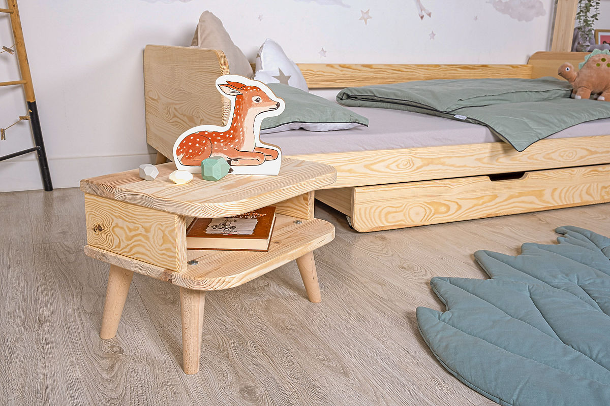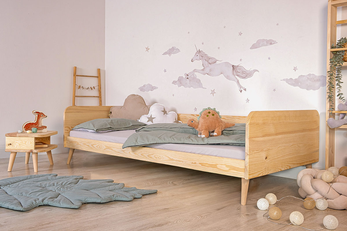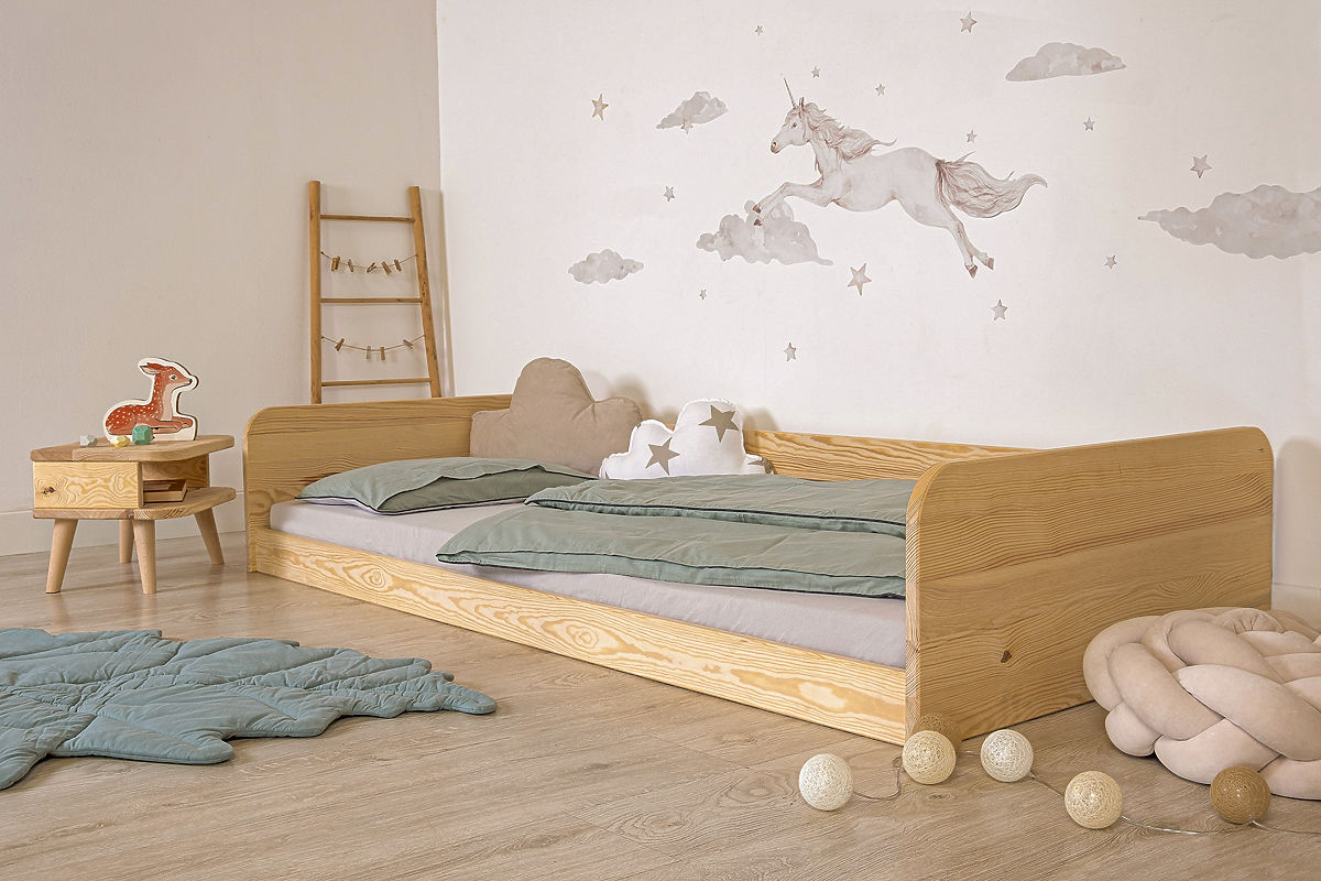 Natural krevet Nell tvrtke Ourbaby , izrađen od visokokvalitetne borove drveće, spaja modernu eleganciju s praktičnošću. S mekim zaobljenim oblicima unosi bezvremenski dizajn i udobnost u dječju sobu, upotpunjenu prirodnom estetikom borovine. Ovaj krevet nije samo mjesto za odmor, već također stvara prostor za snove i avanture. S dizajnom inspiriranim Montessori konceptom, nudimo krevet niskog profila koji podržava neovisnost vaše djece. To im omogućuje da samostalno ulaze i izlaze iz svog svijeta spavanja, što potiče njihovo samopoštovanje i neovisnost.
