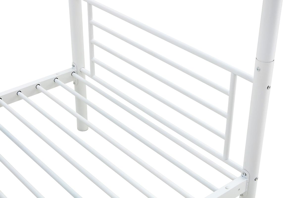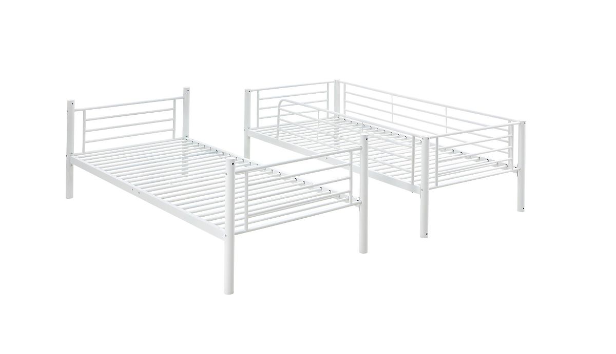 Moderni bijeli metalni krevet na kat BUNKY idealan je izbor za one koji traže praktično i elegantno rješenje ne samo za dječju, već i za studentsku sobu.