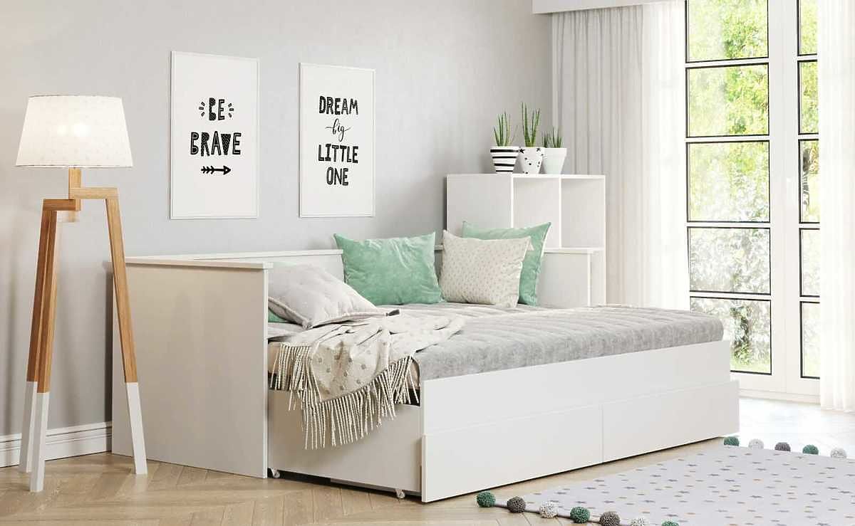 Tražite odgovarajući krevet za studentsku, spavaću ili gostinjsku sobu? Idealan izbor je HELIOS sklopivi krevet u bijeloj boji. Ovaj model spaja elegantan dizajn s praktičnom funkcionalnošću . S jedne strane, u prostoriju će unijeti dašak mekoće, prozračnosti i sklada. S druge strane, milé će vas iznenaditi svojom praktičnošću, jer se jednostavnim izvlačenjem letvica može pretvoriti u bračni krevet. Dvije prostrane ladice pružaju vam prostor za pohranu , što je zgodno za odlaganje posteljine, odjeće ili raznih stvari.