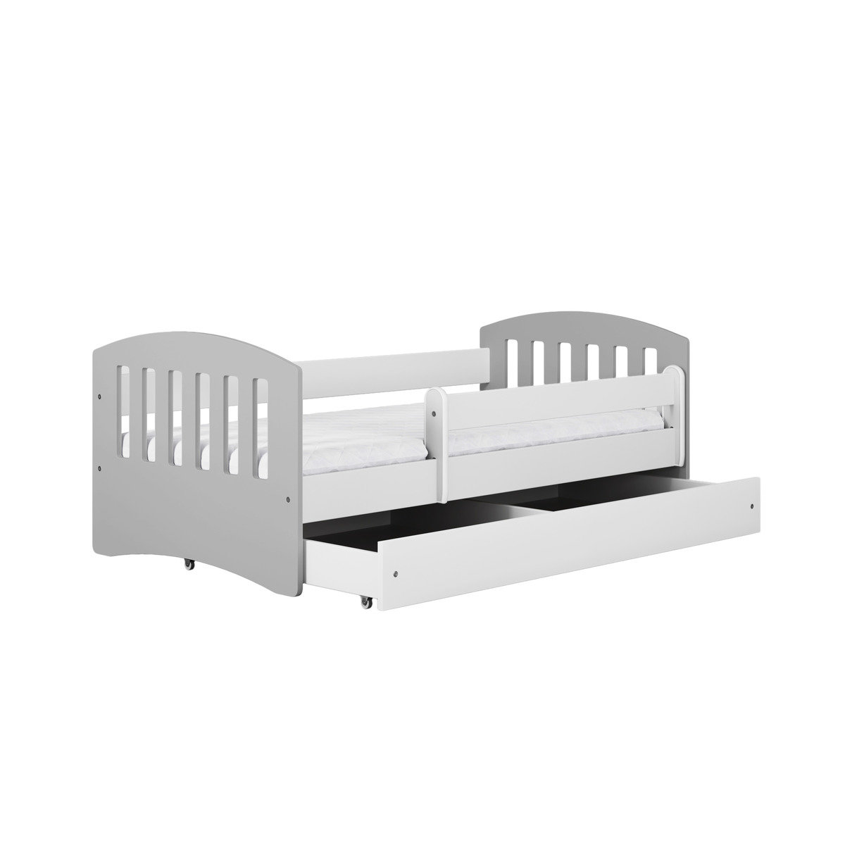 Prekrasan moderni dječji bijeli krevet sa sivim uzglavljem. Svojim bojama odgovara za dječje sobe za dječake i djevojčice.