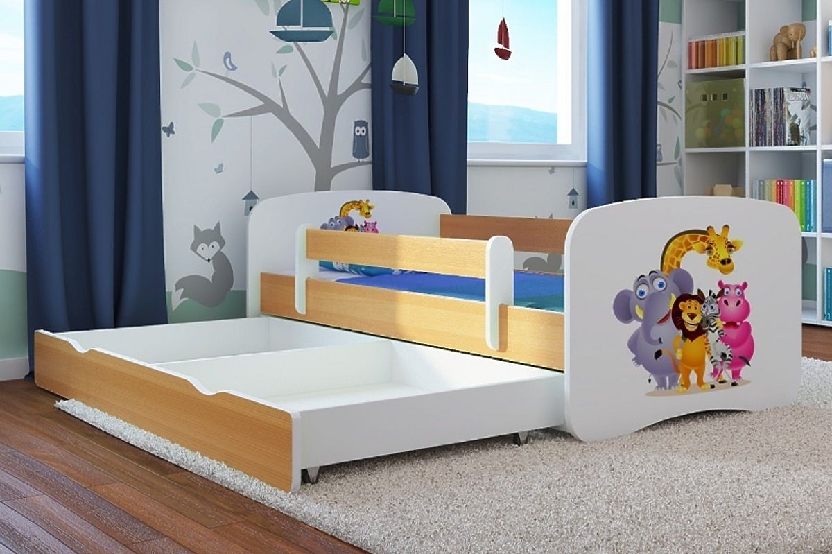 Motiv dětské ZOO nadchne každé dítko. Vy nyní tento motiv můžete mít na dětské posteli. Krásný moderní a dětský design s bukovými bočnicemi vypadá nádherně!