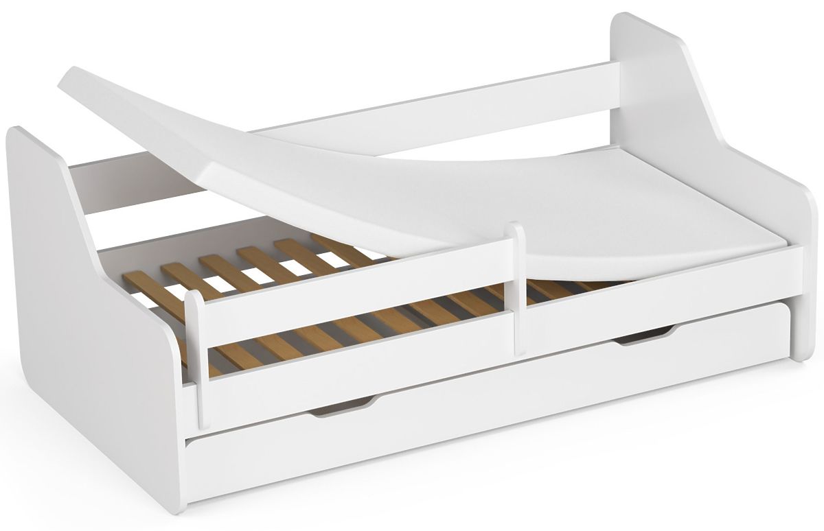 Krevet ACTIV dimenzija 160x80 cm s madracem, ladicom i zaštitom. Kompletan krevet za dječaka ili djevojčicu u dječjoj sobi. Boja bijela. Okvir može nositi opterećenje do 100 kg.