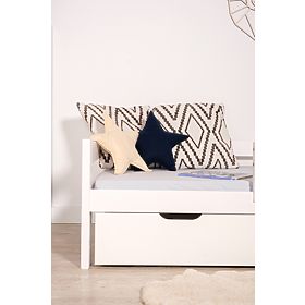 Klasični dječji krevet Paul s ogradom u bijeloj boji prikladan je za dječje sobe za djevojčice i dječake. Jednostavna, funkcionalna i sigurna konstrukcija bijelog kreveta od borovog drva može izdržati do 100 kg, tako da se bez brige možete sjesti na rub i čitati djetetu priču. Odaberite između nekoliko dimenzija, prema visini djeteta za koje je krevet namijenjen. Ladica ispod kreveta je praktična, ali krevet možete kupiti i bez nje.