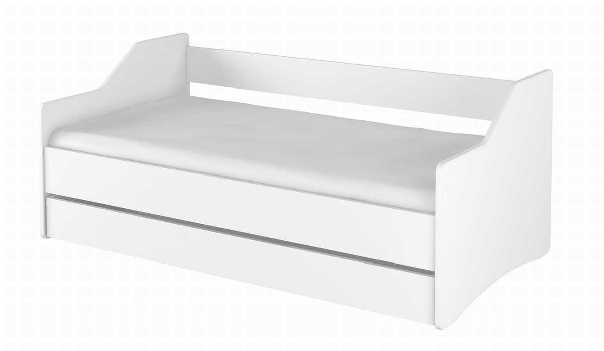 LULU dječji krevet u obliku sofe u bijeloj boji. Ovaj poseban model kreveta poznat je kao krevet s naslonom. Noću krevet služi kao klasični krevet, a danju kao kauč.