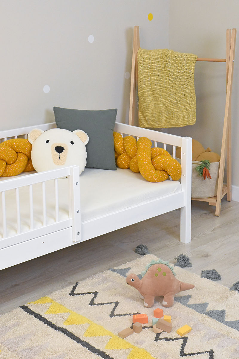 Stilski i praktičan dječji krevet Teddy u elegantnoj bijeloj boji osigurava vašem djetetu siguran i udoban san. Robusna konstrukcija nudi dugotrajnost, a zahvaljujući promišljenom dizajnu, krevet je ne samo siguran već i funkcionalan. Lako se uklapa u svaku dječju sobu.