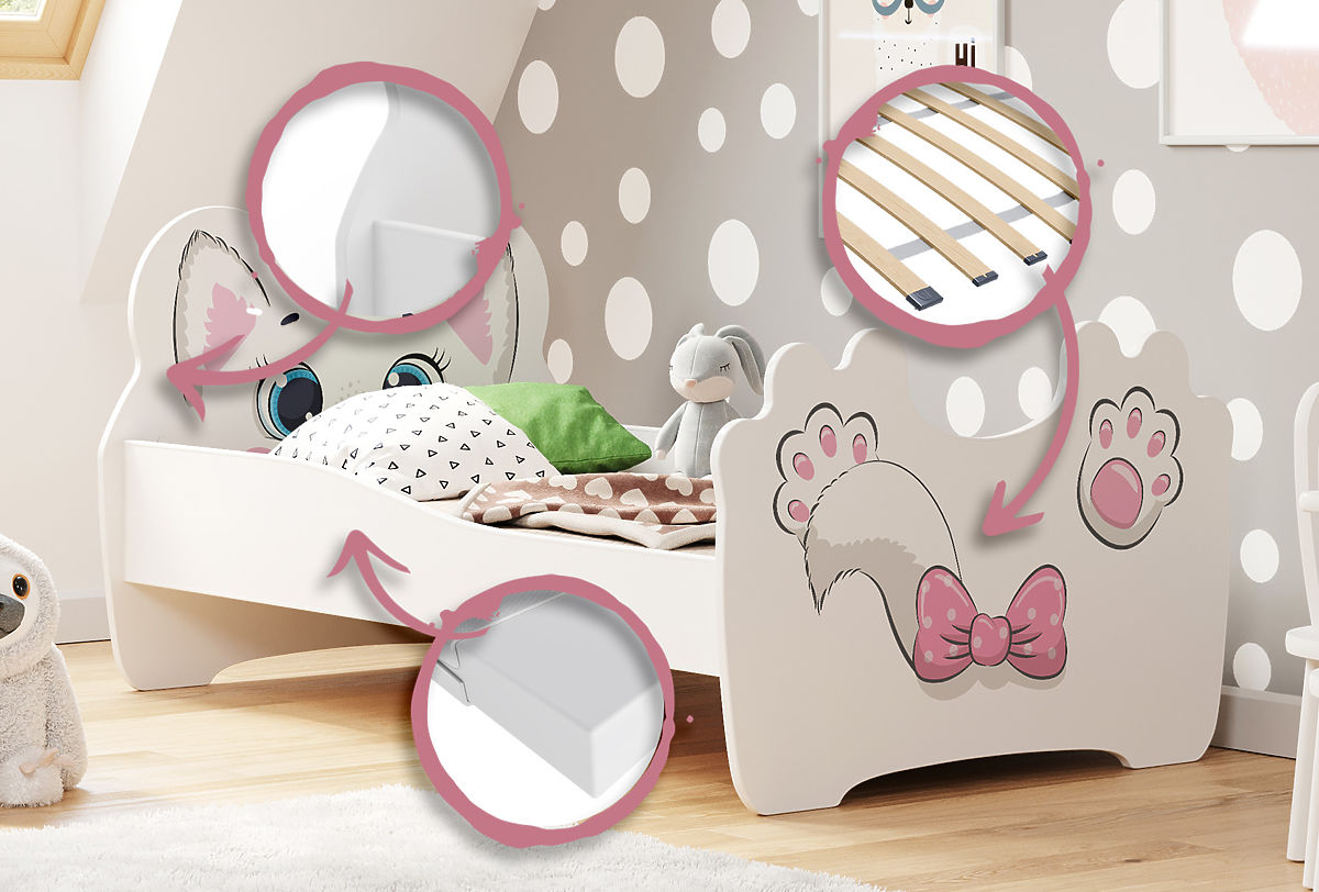 Banaby.hr » Dječji kreveti / Kreveti sa zaštitnim ogradom / Jednokrevetni krevet Pink Cat 140x70 s madracem