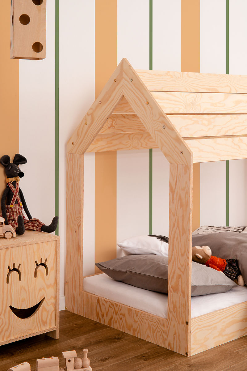 Montessori krevet kućica Chris bit će prikladan izbor za sobu za dječake i djevojčice. Zahvaljujući bezvremenskom i originalnom dizajnu, može se kombinirati s raznim dodacima u boji, i ne samo to - svaki će mali posjetitelj sobe biti oduševljen kućicom u kojoj možete udobno čitati, odmarati se ili igrati. Gornji dio kuće imitira krovni pokrov na koji možete objesiti lampe ili ga ukrasiti na druge kreativne načine i tako učiniti ne samo spavaći dio, već i cijelu prostoriju ugodnom. Zahvaljujući svom dizajnu, krevet podržava djetetovu neovisnost bez straha od pada.