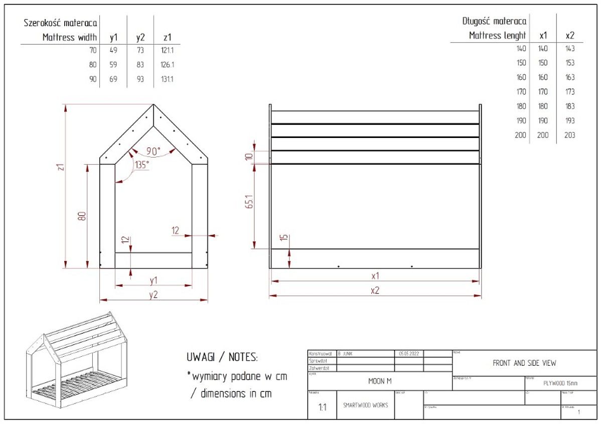 Napomena: madrac nije uključen. U kategoriji Dječji madraci možete pronaći madrace po željenoj veličini.